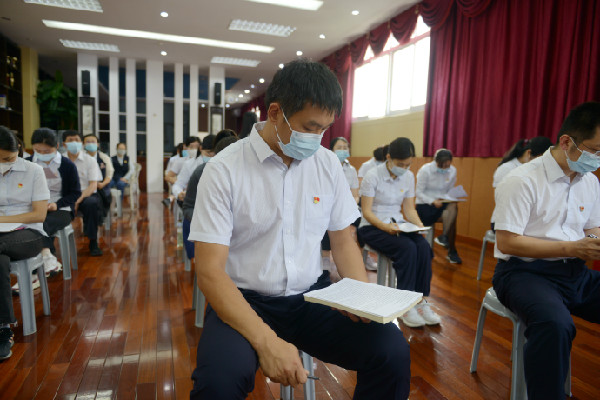 在党课的第二环节,大家集体学习了习近平总书记3月17日主持中央政治局常委会部署从严抓好疫情防控工作、5月5日主持中央政治局常委会研究部署抓紧抓实疫情防控重点工作两个学习材料,深刻认识到我国坚持“外防输入、内防反弹”,不断提升分区分级差异化精准防控水平,快速有效处置局部地区聚集性疫情,最大限度保护了人民生命安全和身体健康,我国经济发展和疫情防控保持全球领先地位,充分体现了我国防控疫情的坚实实力和强大能力,充分彰显了中国共产党领导和我国社会主义制度的显著优势;大家进一步认识到,我们的防控方针是由党的性质和宗旨决定的,我们的防控政策是经得起历史检验的,我们的防控措施是科学有效的在疫情防控工作中,因此必须要深刻、完整、全面认识党中央确定的疫情防控方针政策,坚决克服认识不足、准备不足、工作不足等问题,坚决克服轻视、无所谓、自以为是等思想,始终保持清醒头脑,毫不动摇坚持“动态清零”总方针,坚决同一切歪曲、怀疑、否定我国防疫方针政策的言行作斗争;大家进一步感受到,党员和行政管理人员要继续冲锋在前、顽强拼搏,发挥党支部战斗堡垒和党员先锋模范作用,带领全体师生坚定信心、同舟共济、团结一心做好抗疫工作。