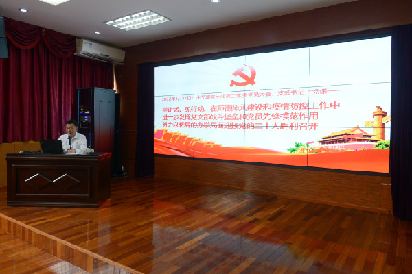5月17日,小学部党支部组织召开第二季度党员大会,开展“支部书记上党课”。党支部书记顾兵同志以《学讲话,见行动,在师德师风建设和疫情防控工作中进一步发挥党支部战斗堡垒和党员先锋模范作用,努力以优异的办学局面迎接党的二十大胜利召开》为主题为全体党员上了一次内容丰富、严肃认真、学习扎实、联系实际的党课。