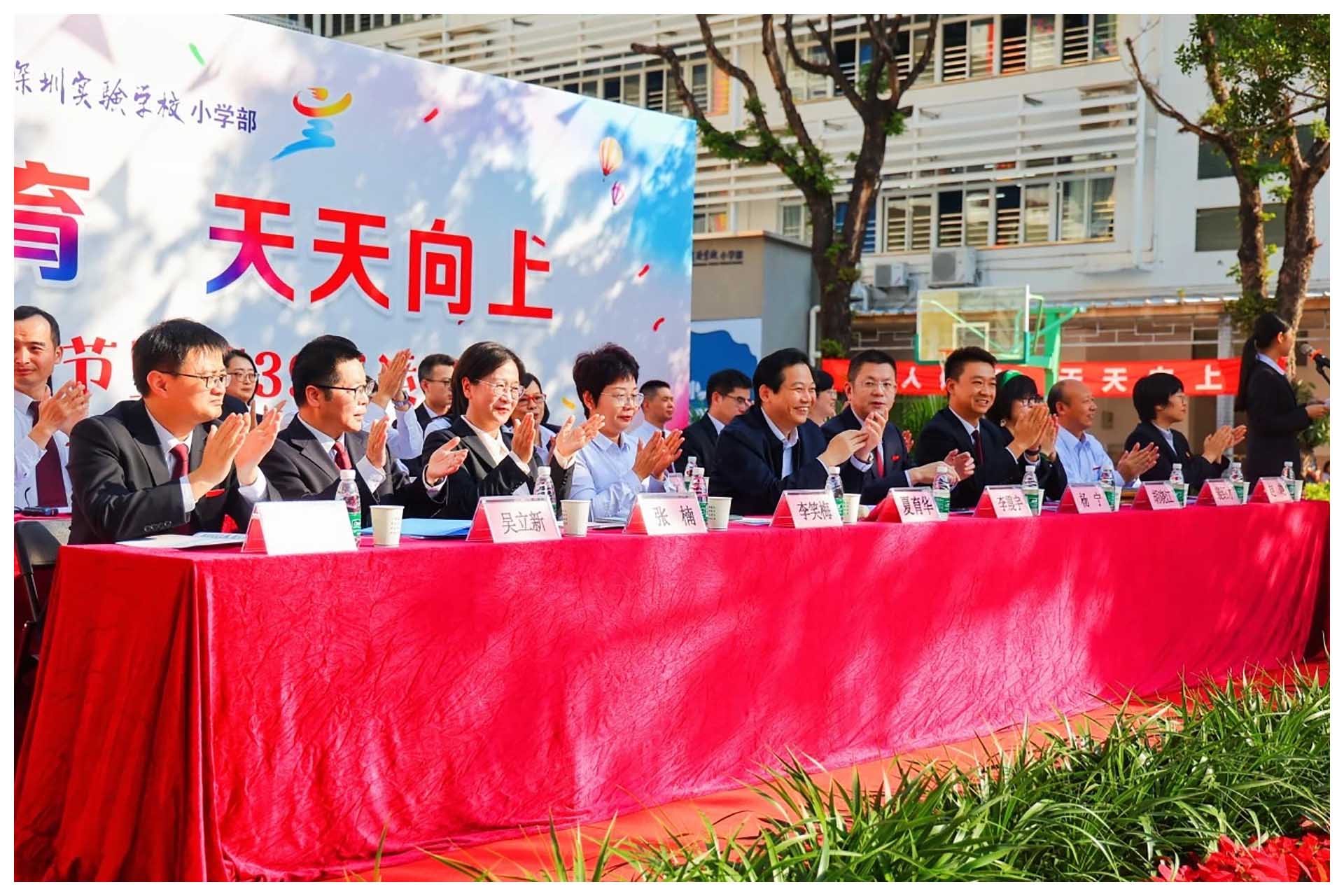 小雪节气,欢欣冬阳。11月22日下午三点,小学部近两千名师生在田径场隆重集会,举行深圳实验学校小学部2023年体育节暨第39届运动会开幕式。深圳实验教育集团党委夏育华书记、高中园李震宇总校长、初中部李笑梅执行校长、中学部杨宁执行校长、集团党政办公室张楠主任、集团教育教学部胡晓江主任 、高中部部主任助理裴绍才、坂田校区初中部负责人赵晓、坂田校区小学部负责人叶伟生、光明学校代表总务处副主任姜凯、光明部代表团委书记梁镨月、集团和各兄弟学部领导干部及家委等80多位来宾出席开幕式。