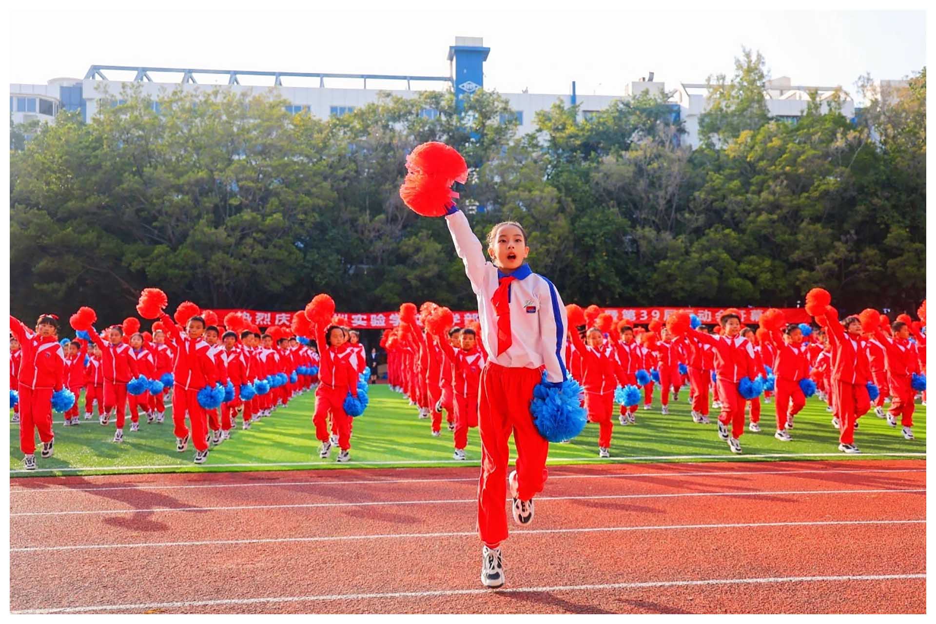 二至五年级学生踏着轻快的旋律,舞动鲜艳的花球,进行团体操表演《闪闪的红星》。看!孩子们灿烂的笑脸,犹如花朵绽放。听!欢快的音乐节奏,催人奋进!