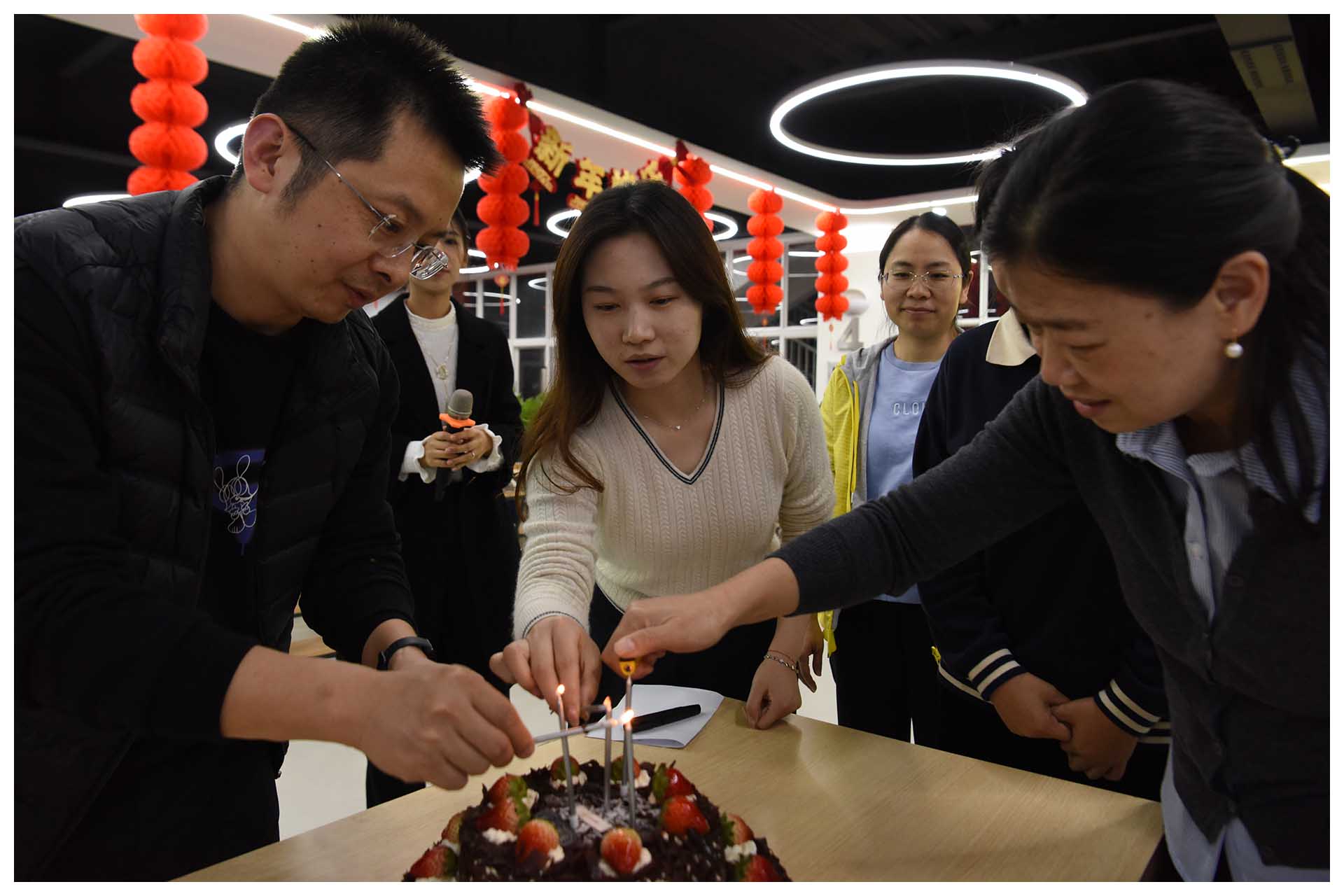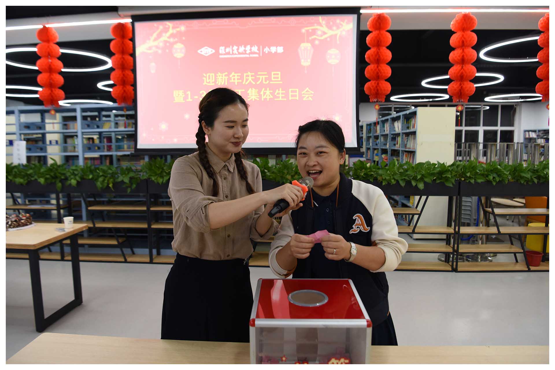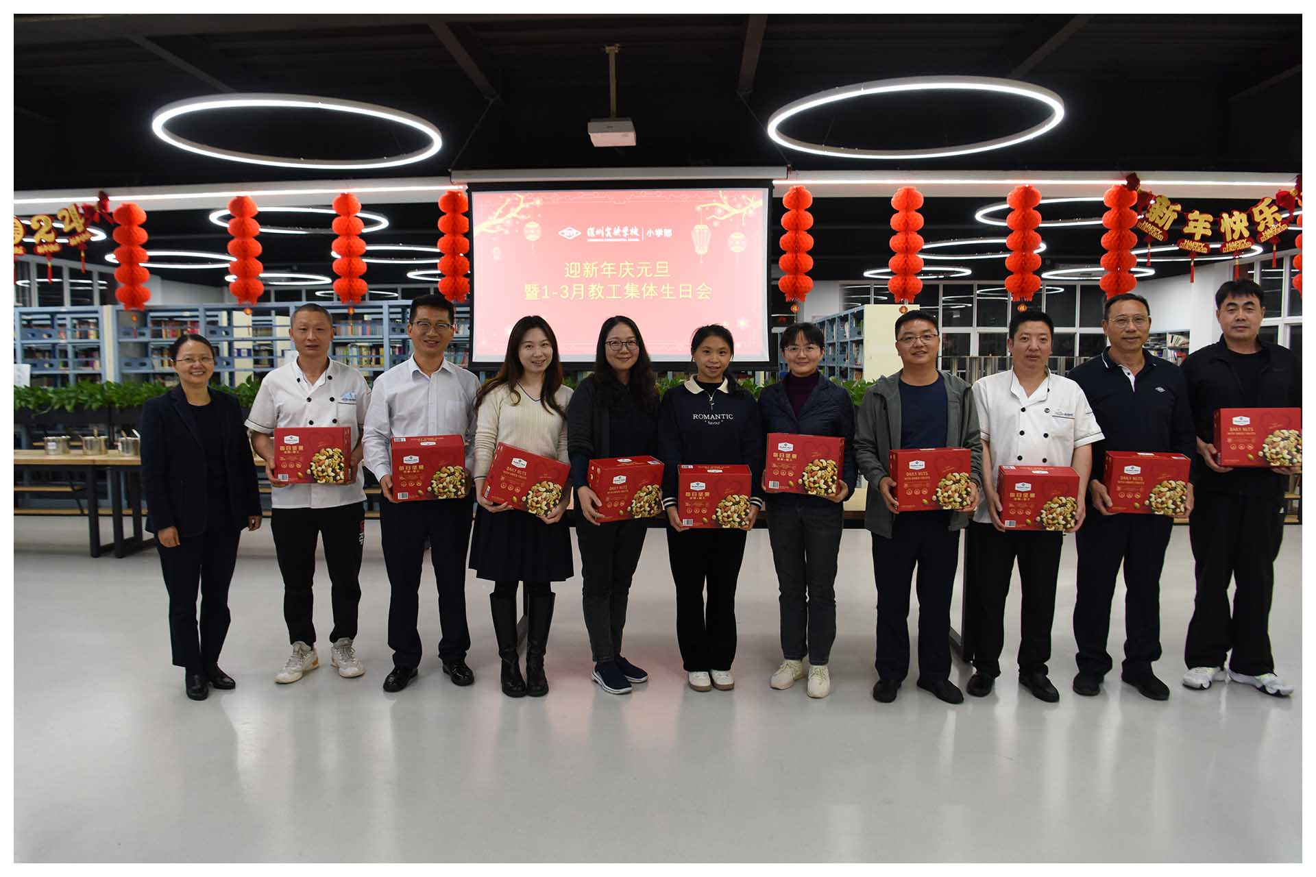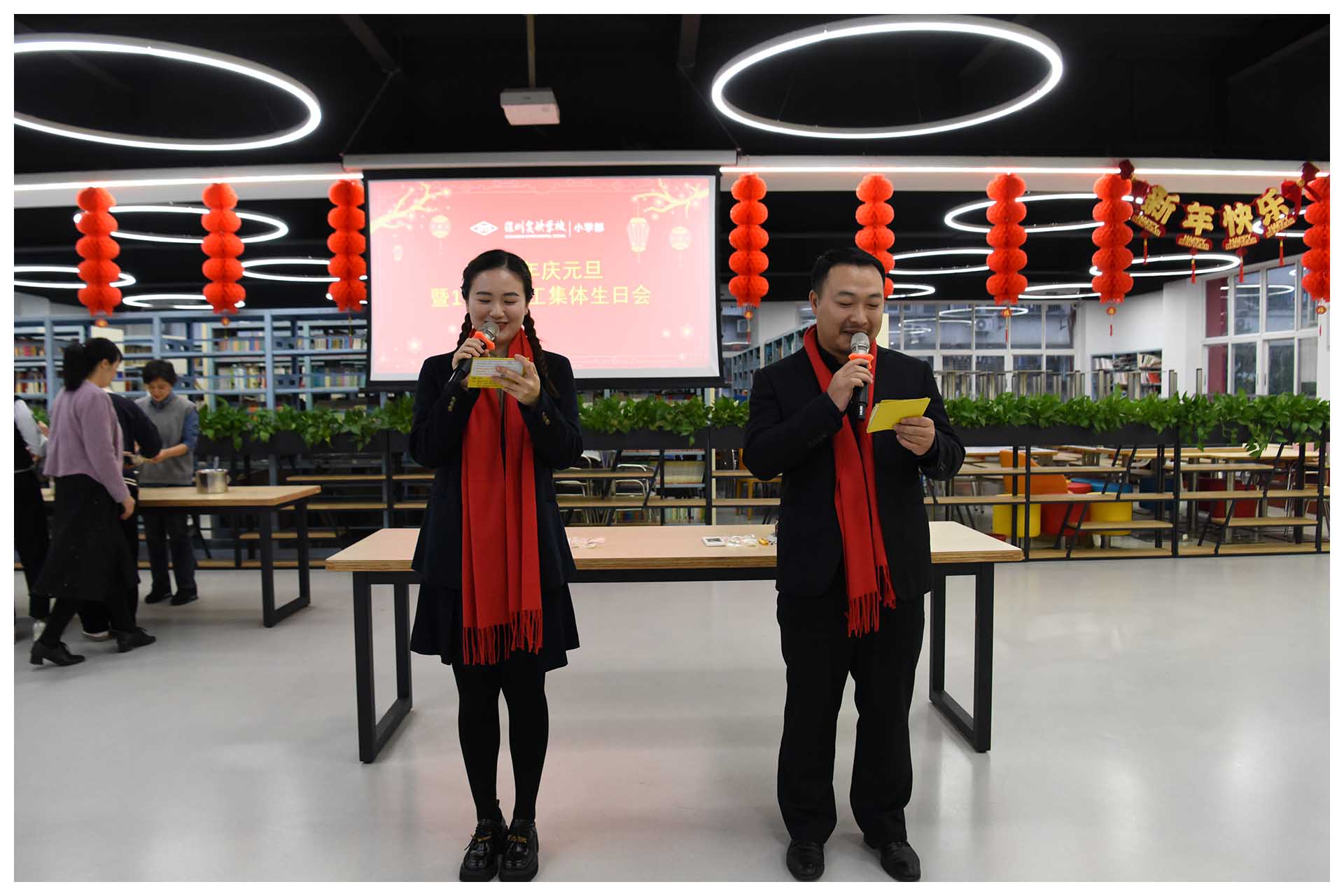 一声声锣鼓敲响元旦的幸福,一盏盏彩灯照亮元旦的祝福。活动在喜庆欢腾的生日会中拉开帷幕,小学部全体教职工欢聚一堂,现场气氛热烈非凡。