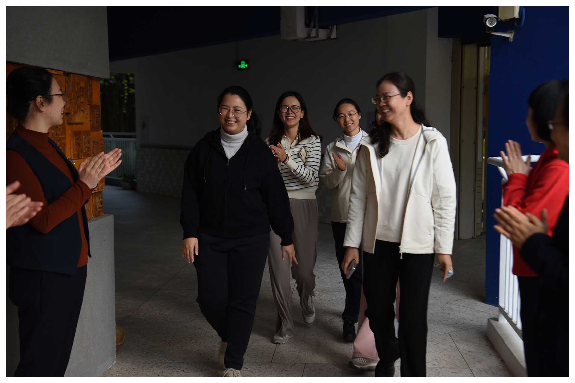 生日会在第一个游戏 “猜寿星”中拉开序幕。在此起彼伏的欢笑声后,吴立新执行校长和杜益明主任为寿星们送上生日礼包,大家点上蜡烛,齐唱生日歌,为寿星们送上诚挚的祝福。