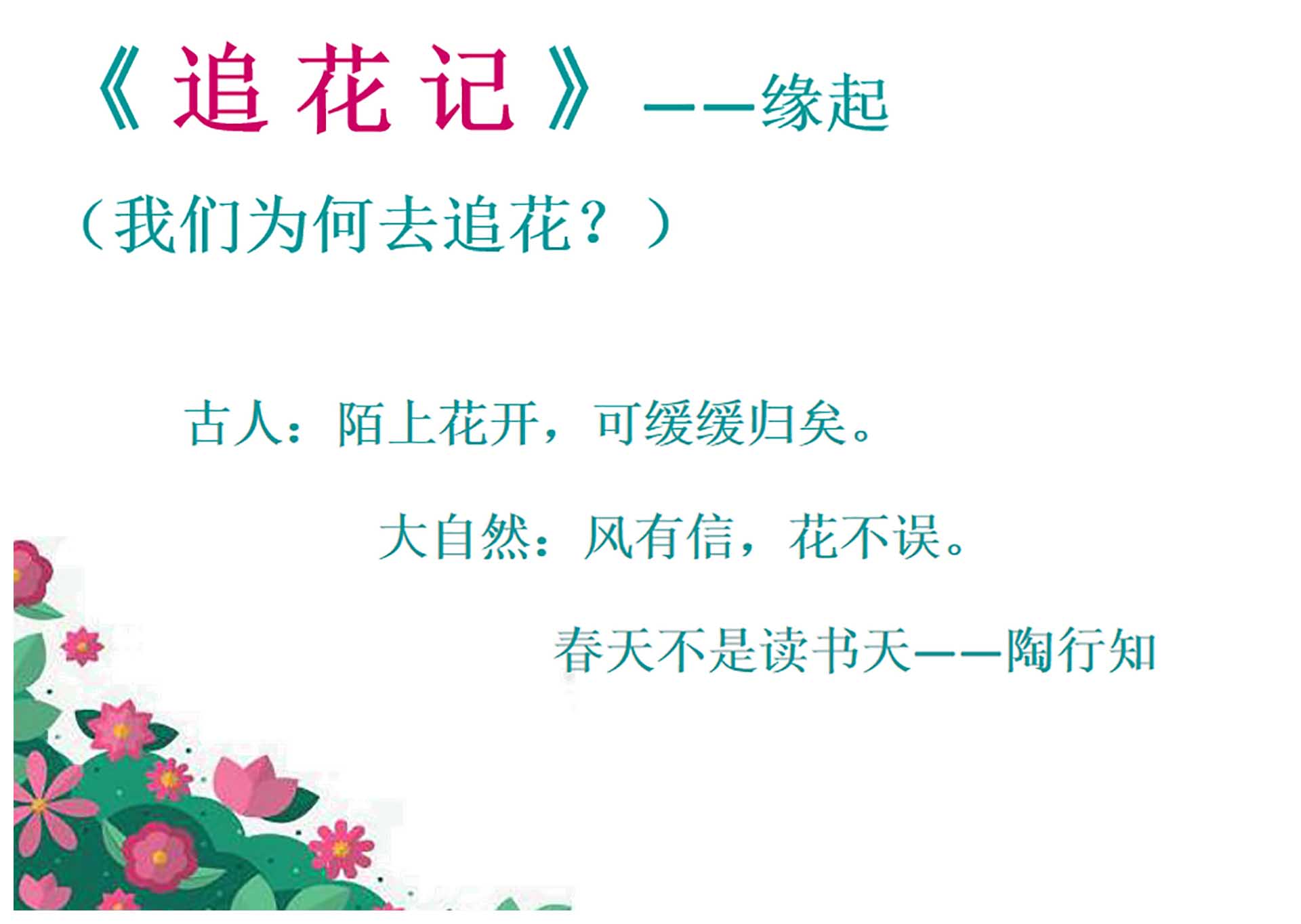一年级组三位老师以“春生夏长”为主题,从语文、科学、美术等学科出发,引导学生走进春天百花盛开的景象,感受自然之美,探究科学奥秘,培养艺术素养。