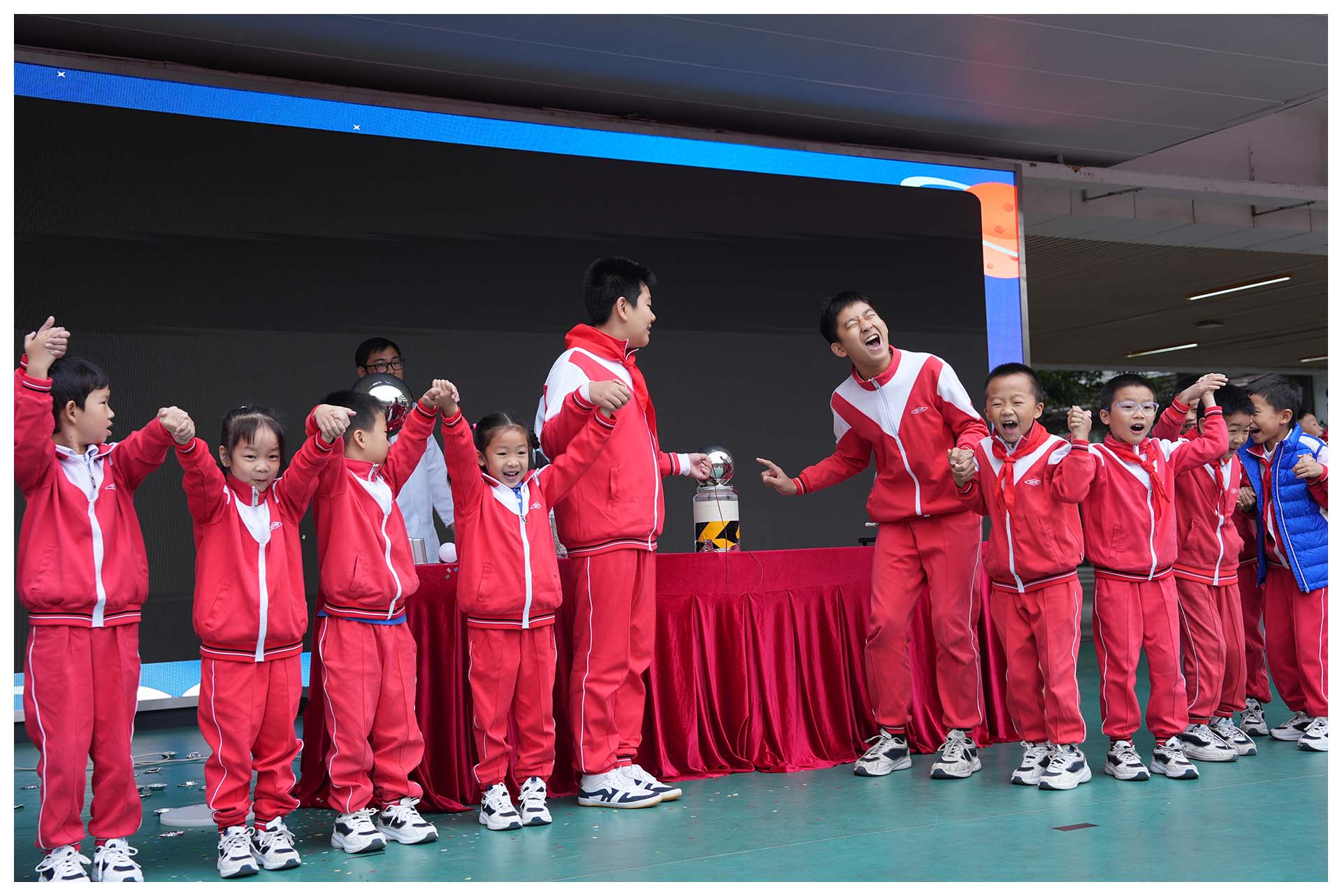 12月9日,随着炫目的无人机编队表演划破天际,深圳实验学校小学部第34届科技节在万众瞩目中拉开帷幕。紧接着,科普剧《泡澡还是做汤》以诙谐幽默的方式,让科学知识在欢笑中生根发芽;而《触电啦》科普秀,则通过友情测试灯、隔空取电、空中水母等一系列令人目不暇接的互动实验,激发了同学们对科学探索的无限向往与热爱。