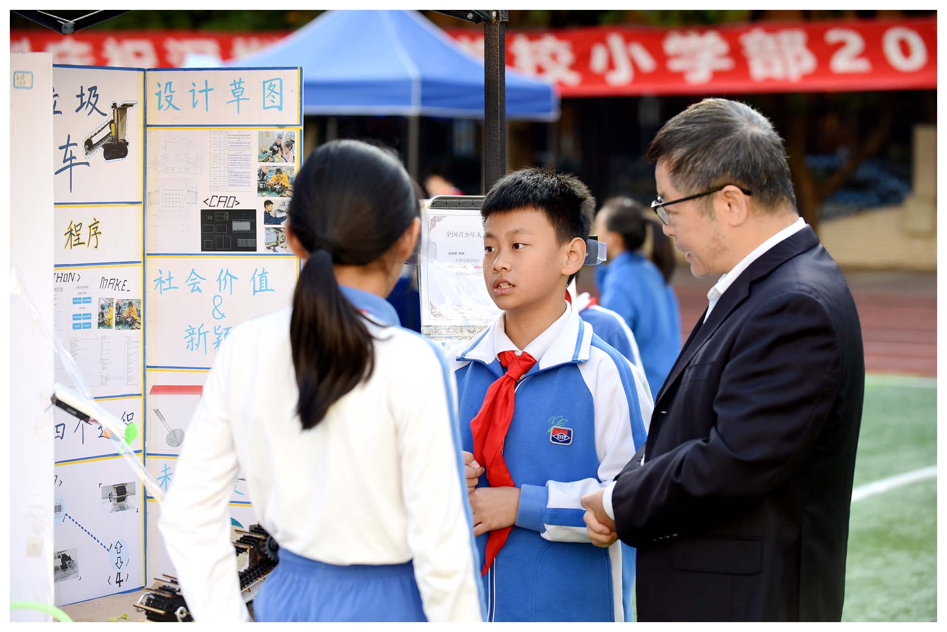 此外,初中部学长学姐的航模展演、创客社团的精彩表现,以及小学部学生的鞋盒博物馆与微创新作品展示,更是为嘉年华增添了无限色彩。