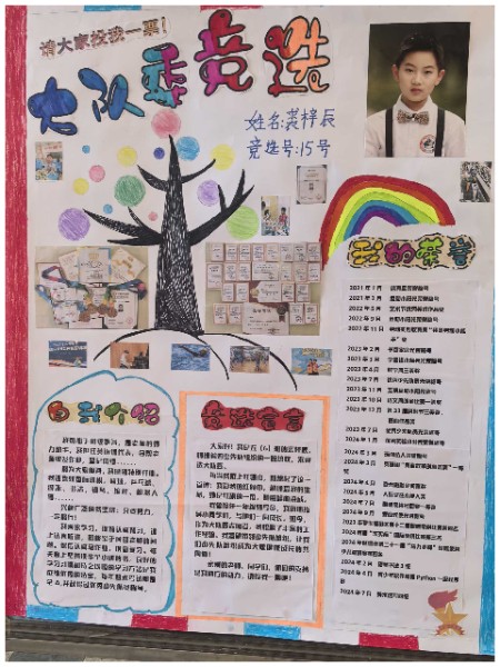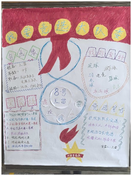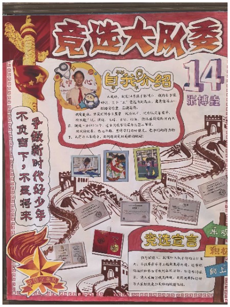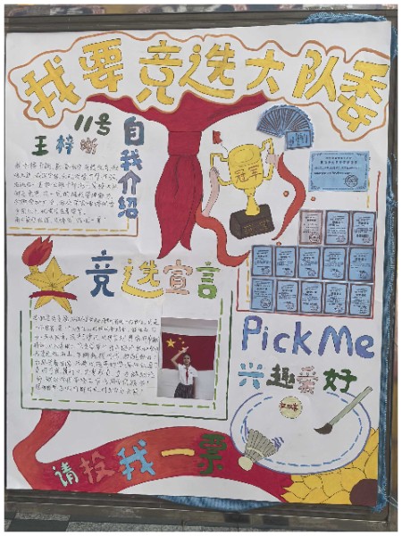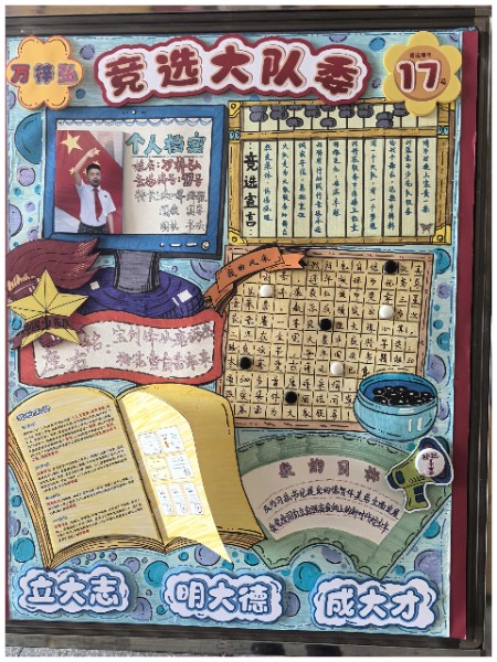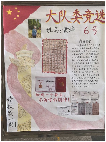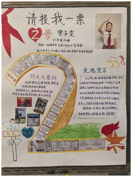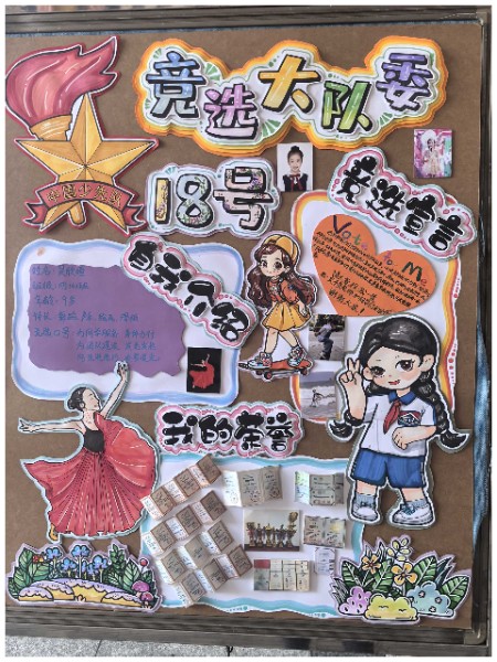 一张张自制竞选海报,不仅是创意思维与满腔热情的完美结合,更是对美好未来的深切向往与不懈追求的生动展现。队员们以纯真的童心绘制梦想的蓝图,以精妙的构思点亮希望的灯塔,彰显了矢志成为新时代先锋的坚定信念与豪情壮志。