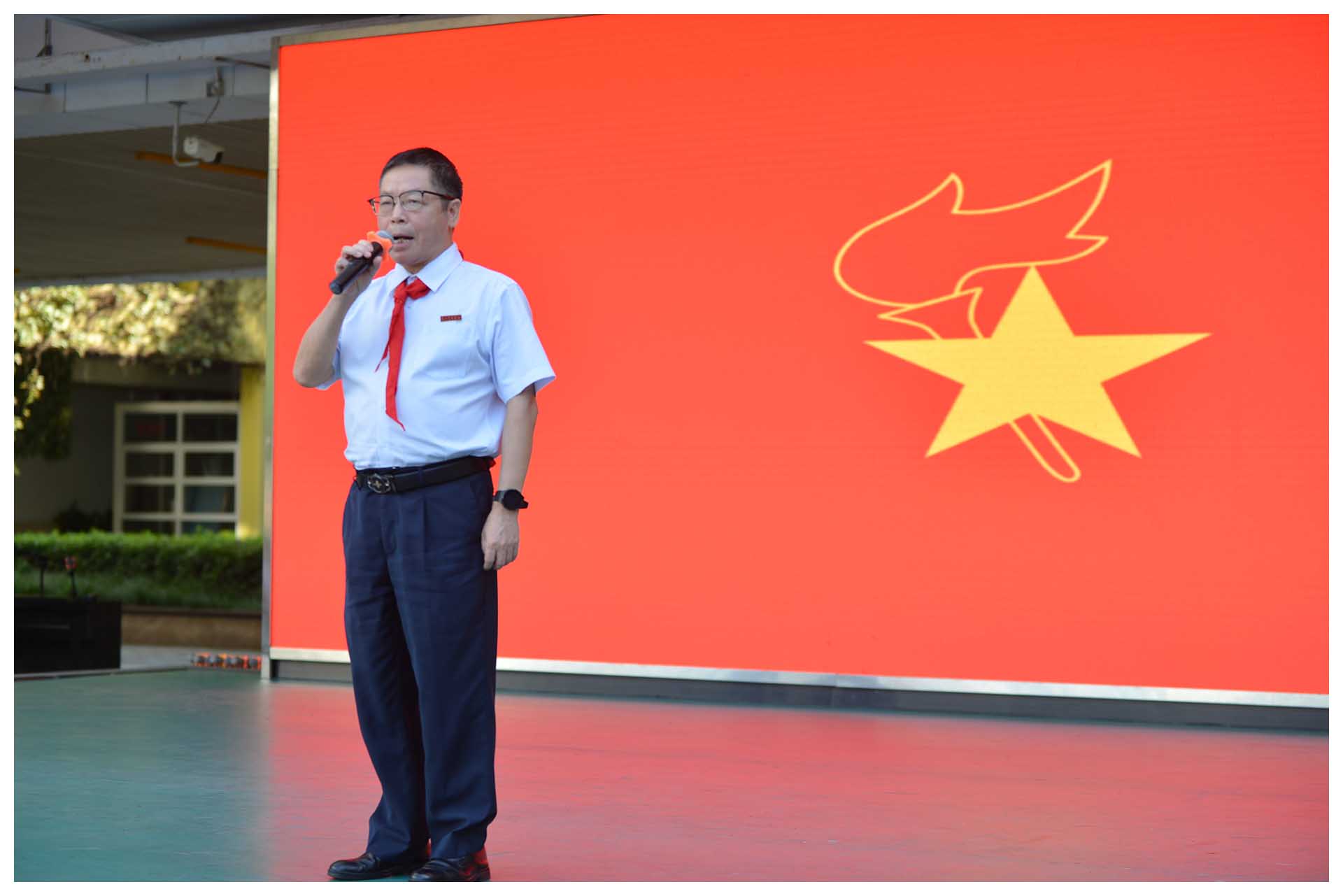 活动进入尾声,学部党支部书记吴立新校长领呼:“准备着:为共产主义事业而奋斗!”代表着党对少先队的要求,体现了少先队组织的政治属性,小学部全体少先队员响彻四方的回答:“时刻准备着!”这是少先队员在呼号中郑重地表达自己的决心与行动。