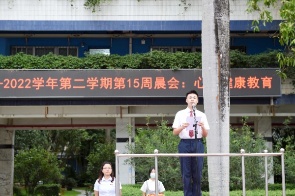 5月23日周一晨会,学生代表初三8班胡子淳同学以“让心中充满阳光”为主题,向全体师生介绍了心理健康的重要性。并提出,呵护心理健康,培养积极心态,有两方面可取。一是自我改善与调节,二是向他人寻求帮助。强调要时刻保持上进之心,宁静之心,阳光之心。