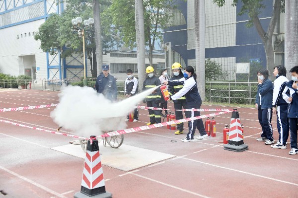 演练过程中,中学部全体师生听从指令,秩序井然,从拉响警报至全体人员撤离用时3分钟以内。到达操场后,全体师生迅速按照晨会队形集结,各年级、班级清点完人数并第一时间报告。本次消防演习取得圆满成功。随后,全体师生认真聆听了本次消防演练的成果汇报。物业消防主管讲解、展示了灭火器实际使用方法,并指导各年级学生代表进行现场操作。