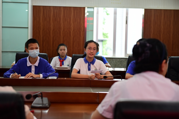 本期“校长见面日”主要面向2020级初一新生,会议在轻松愉快的氛围中展开。在场的各班学生代表在会议之前,积极收集了班级同学们的问题与建议,就学校的教育教学、学生管理、课外实践活动以及阅读等方面踊跃发言,同时提出了一些建议。