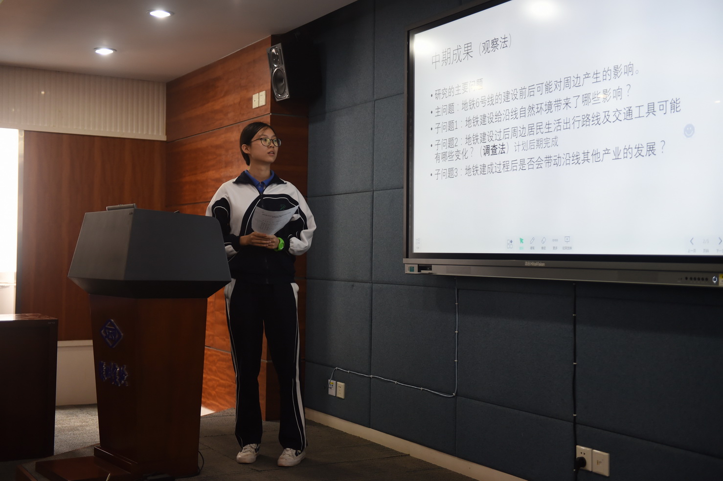 小课题报告会由部主任助理徐少云主任主持。三个课题报告依次为:《拖延症对深圳高中生的影响》,指导教师张彤;《探究深圳地铁6号线将对深圳市内和光明区产生的影响》,指导教师杨洁兰;《日本动漫对深圳市高中生产生的影响及其成因分析》,指导教师蒋敏慧。