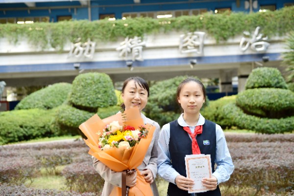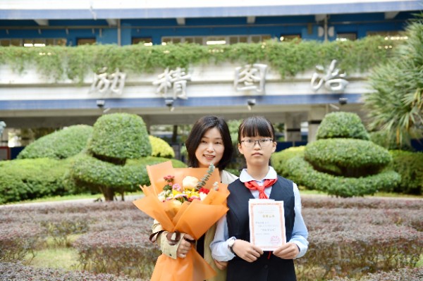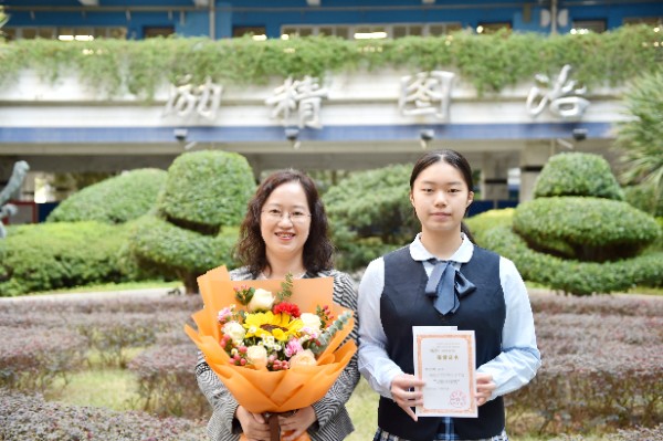 随后,深圳实验学校校长衷敬高依次为“实验学校奖”获奖学生颁发奖状,副校长、中学部执行校长龙萍为获奖学生家长献花祝贺。正值青春少年的他们必将不负韶华,勇毅前行,不断进取,永不满足。仪式上,九年级(9)班周子欣同学作为获奖学生代表上台发言。她表达了对学校、家长、老师以及同学的感谢,分享了学业进步经验和多彩活动的感悟。她号召同学们践行实验精神,敢于肩负时代使命, 勇于扛起未来国家重担,为祖国蓬勃发展的春天而奋斗。