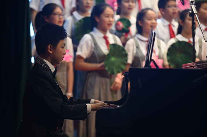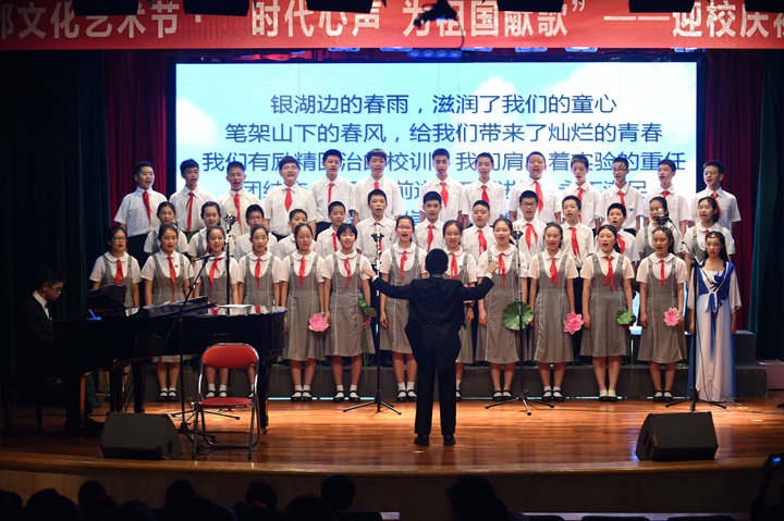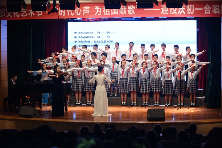 在整个合唱比赛中,同学们沉浸在优美的旋律之中,遨游在艺术的海洋之中,为实验、为祖国献上了款款深情和深深地祝福。(文/初一7班任乐奕 图/电教室)