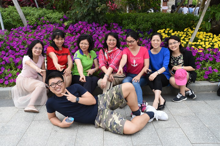 早晨8点整,迎着初晨的朝阳,伴着绵柔的春风,准时出发。路途上,车厢里,老师们尽展才艺,欢声笑语,上午10点到达目的地:中山伟丰生态农场。农场位于广东省最美丽乡村——新伦村,景区沿河而建,四面环水,环境优美。面对着大片盛开的鲜花,老师们也“百花争鸣”、“鲜花娇艳”,大家纷纷赏花美拍,享受阳光和花香的沐浴。深入田间,品尝农场新鲜时令水果,享受自然生态的馈赠。