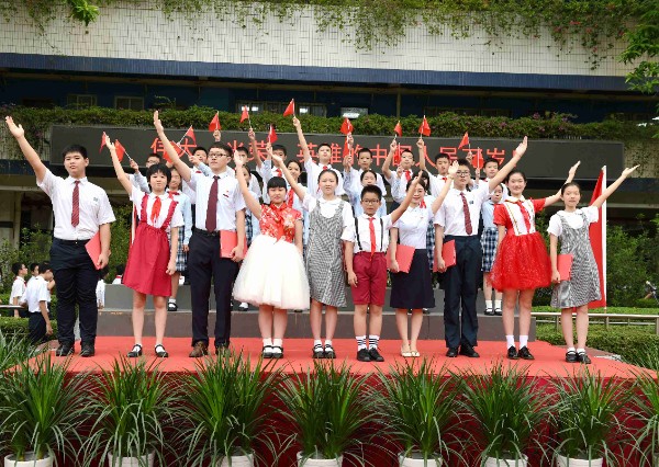 随后,学生团员、青年教师、党员代表朗诵《请您放心,强国有我》,师生包含深情,声情并茂,富有感召力,在师生中产生了强烈的共鸣。初一年级少先队员倾情合唱歌曲《名字叫中国》,台上挥舞的国旗在悠扬的歌声中迎风飘扬,表达了师生对伟大祖国的热爱,对祖国伟大成就的自豪。师生代表们精彩的表演,赢得了现场阵阵掌声。