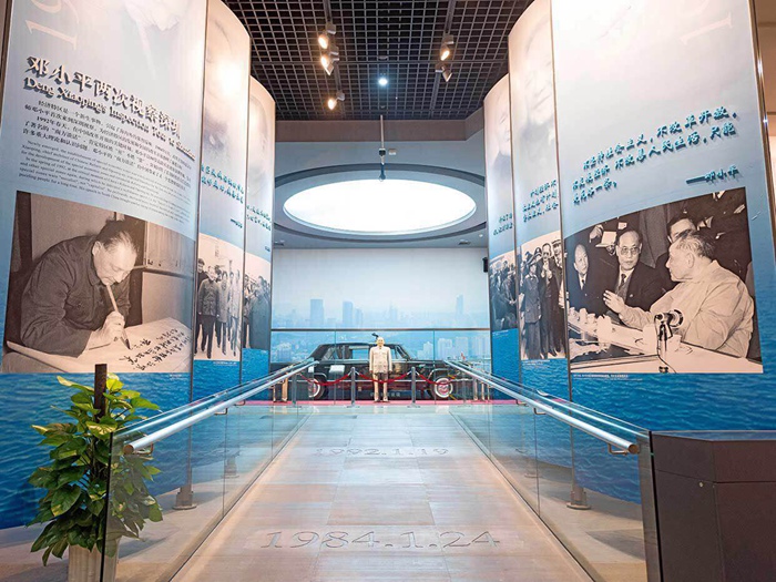 最后,我们来到了深圳改革开放史展厅。一幅幅反映深圳改革开放的珍贵照片、一个个具有代入感的场景,立体地展现了深圳经济特区波澜壮阔的改革开放历程。深圳改革开放40年来,从一个落后的边陲小县一跃而成为一座美丽的现代化城市,其发展之迅速,变化之巨大,举世瞩目,被称为“中国的奇迹”。深圳以成功的实践,向世界展示了中国特色社会主义的勃勃生机和光明前景。如今,改革开放再出发!党中央赋予深圳新的功能定位——新时代中国特色社会主义先行示范区。