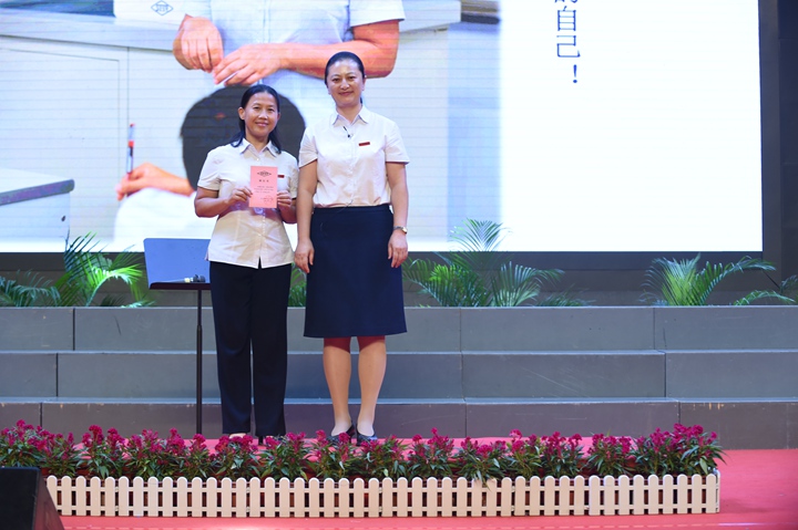 年级主任、班主任拜授仪式隆重热烈、高潮迭起。年级主任、班主任老师依次登台,从龙校长手中接过聘书,接受龙校长的拜授,各位年级主任和班主任铿锵有力地回答:“我会尽心尽力工作,请校长放心!”“我会努力工作,请校长放心!”这是老师们发自肺腑的教育誓言,是老师们用心向学校做出的庄严承诺,更代表了一个个自省自励、奋发进取的职业态度,一个个充满教育理想的教育梦。