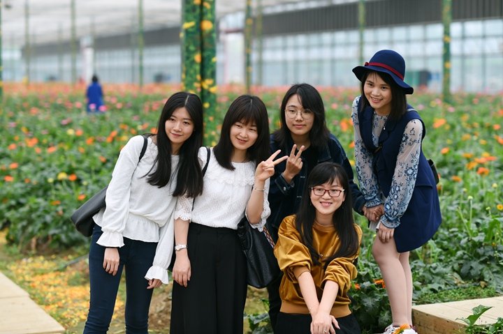 午餐后,我们前往梦里水乡百花园。那时,天空中下起淅淅沥沥的小雨,但丝毫没有影响老师们游园的心情。老师们坐在红色的观光小火车上,伴随着小火车的轰鸣声和园区内“恐龙”的声音,在若有似无的朦胧烟雨中,游览百花园。在美丽异木棉、黄花风铃、宫粉紫荆的花海里,老师们沉浸其中,女教师们在花海中欣赏时,男教师们则拿起相机“咔哧咔哧”记录下此刻人与自然和谐相处的一幕幕。