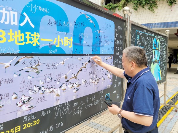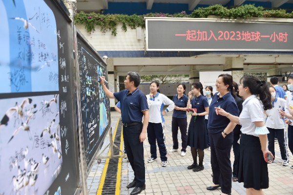 为更好的倡导师生减少能源消耗,减少碳排放,提高师生的环保意识,3月25日12时,中学部团委在校门入口西侧举行了“为地球献出一小时”签名活动。师生热情参与,支持环保,为保护自然贡献自己的力量。