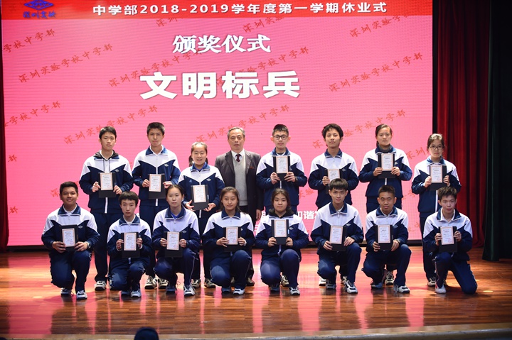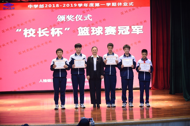 随后,结业式进入表彰环节。学生处杨宁副主任宣读本学期“文明班级”、“文明标兵”、“校长杯”篮球赛成绩以及“优秀学生常规管理干部”的表彰决定。教务处潘浩副主任宣读本学期“学习优秀生”、“学习进步生”和“学习勤奋生”的表彰决定。龙校长、杨光主任、王兵主任先后为在本学期表现突出、成绩优异、取得良好发展的班集体和学生颁发证书。