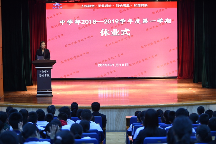 白驹过隙,时间飞逝。1月18日下午,中学部全体教师及各年级班级代表齐聚五楼小礼堂,举行2018—2019学年度第一学期结业式。大会由学生处高丽副主任主持。