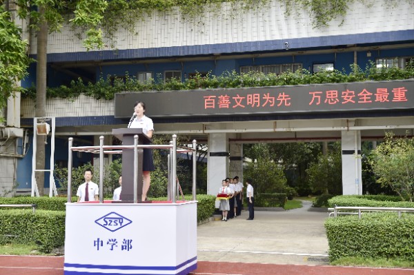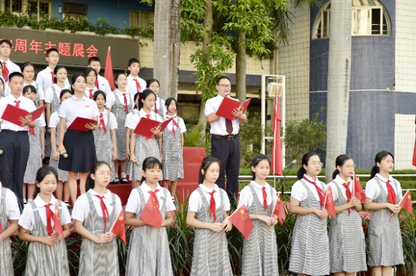 2023年9月28日,中学部开展了庆祝中华人民共和国成立74周年主题晨会活动。杨宁主任做了《精神无形,力量无穷》的主题讲话,从国家精神、特区精神到学校精神进行详细解读,激励师生发愤图强、勇毅前行。强化了青少年爱国的内核,让榜样的力量时刻感召着新一代青年。随后师生代表献上朗诵与歌唱,共同祝福我们伟大祖国,国泰民安、繁荣昌盛!