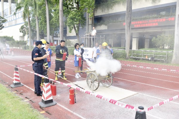 学校还组织了全体师生进行了应急疏散演练。环境逼真,让学生真实感知到火灾的突发和如何应变。老师带领学生有序紧张的疏散后,工作人员还指导学生演练,用灭火器进行现场灭火。演练结束后,工作人员为大家进行了消防安全应急操作和火场逃生技巧讲解,教大家如何正确的报警扑救疏散,如何自救逃生。