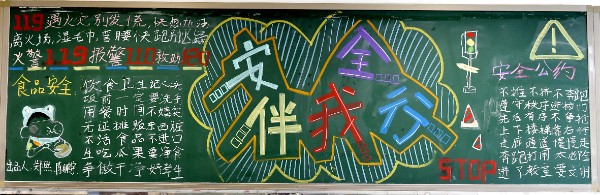 学校组织各个班级制作安全板报,时刻能提醒同学们要强化安全意识,努力增强自我防范能力,做到警钟长鸣,安全永记心间!