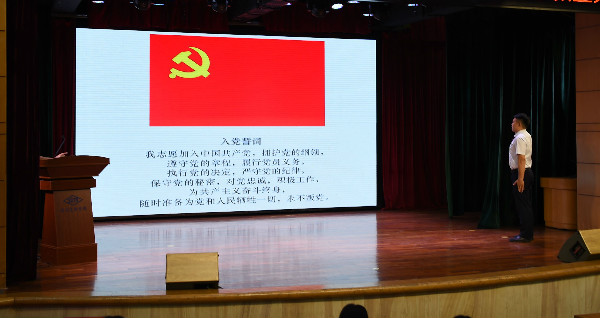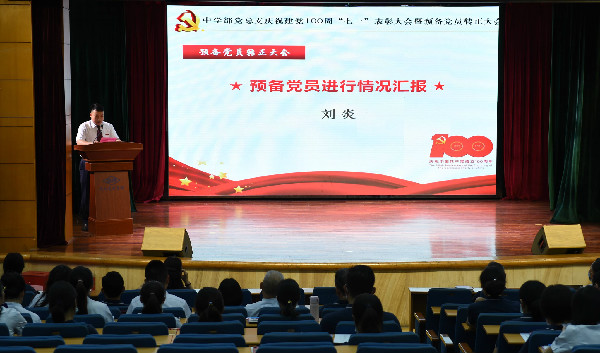 首先,刘炎同志面对鲜艳的党旗,发出铮铮誓言,对党和人民作出庄严承诺。随后他将自己预备期的情况作了思想汇报,刘炎同志表示自己作为一名预备党员,是荣誉,是自豪,更是责任。恰逢建党100周年,今天将是他人生的一个重要时刻。
