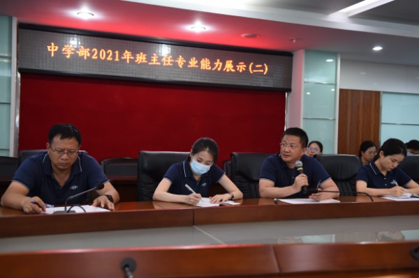 中学部一直以来十分重视班主任队伍的专业化发展,把每周的班主任工作指导例会、每学期的主题班会示范课、班主任沙龙及班主任专业技能展示活动作为重要抓手。