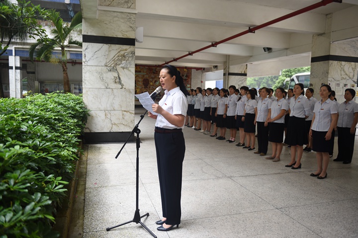 随后,龙校长谈到暑假期间社会发生的一系列大事件,如习近平总书记视察甘肃省等地、喜迎建国七十周年、香港不法分子暴乱等事件,并就香港暴乱一事分享了她的看法。在此事件中,香港给我们每一个人上了深刻的一课,是法制教育,更是爱国教育。龙校长提及“爱国不是一句口号,是本分,是职责,是奋斗,是美德!是心之所系,情之所归。”祖国七十年来,走过风风雨雨后取得举世瞩目的成就,让国人自豪。祖国是一个在痛苦中自强不息,越来越富强的国家,我们没有理由不对更美好的未来充满信心。龙校长还引用了习近平总书记的话:青少年是祖国的未来、民族的希望。作为学生,在人生最美的年华吸取养分。在校内,认真学习,把握关键的三年;在课外,同学们处于走向社会的关键期,应该树立积极的生活态度,做有利于社会的行动,主动融入社会,比如阅读,比如社会实践,养成良好的习惯,塑造健康的人格,形成正确的价值观。正如龙校长所言:“这盛世,还不如我们所愿,但是我们依然很爱她,就像爱自己的母亲。她有缺点,我们一起修正,而不是诋毁她,嘲笑她,更不该居心不良地伤害她”。