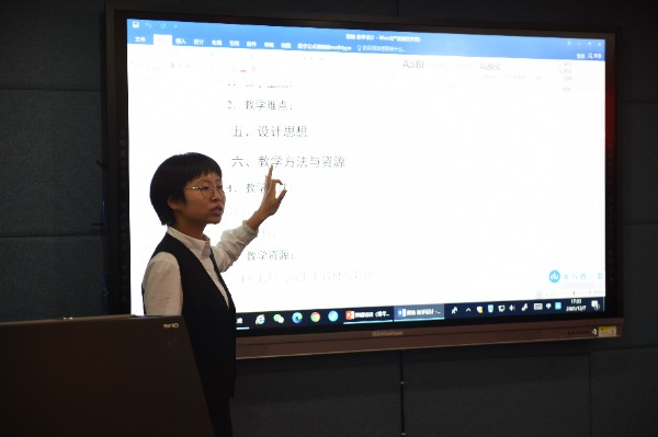 不久前荣获过广东省青年教师教学能力大赛一等奖第一名的优秀青年教师赵曼琳老师和唐丽艳老师分享了自己参加省级大赛的过程和感悟。赵曼琳老师认为,教学设计要全面而精细,“全面”是指拿什么教、教的是谁、教什么内容、怎么教以及教学反思都要全面关注;“精细”则是在教师活动和学生活动环节将设计意图中精准呈现,尤其是要突出学生的主体性。唐丽艳老师用思维导图概述了教学设计和要点,指出:不要忽略单元导言,要注意多种版本教材的对比;学情分析要从学生实际出发;教学目标要呈现出递进的关系;作业设计要有分层意识等等。