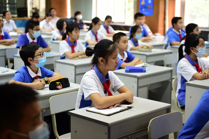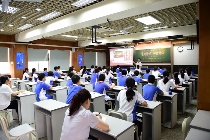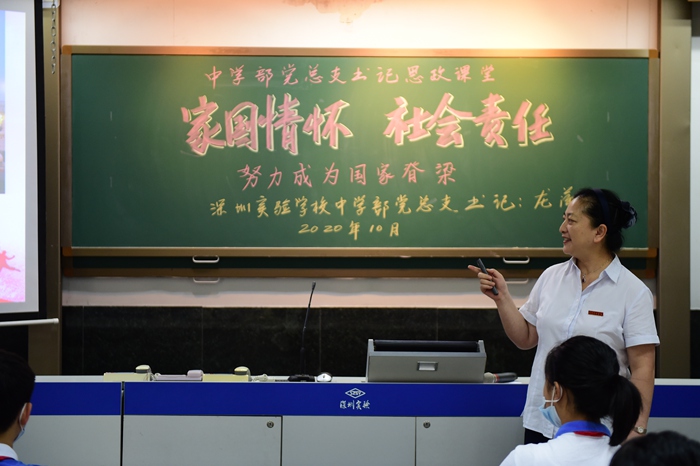 中学部党总支书记龙萍为学生上思政课