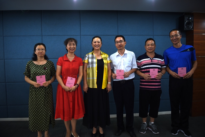 教务处王兵主任宣读五位新教师的拜师安排,龙校长为向敏、康敏、潘浩、李文广和潘明生老师等五位导师颁发聘书。同时,五位青年教师为了表达他们内心的敬意,也向自己的导师赠送了之前精心准备的小礼物。