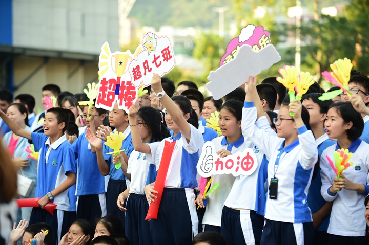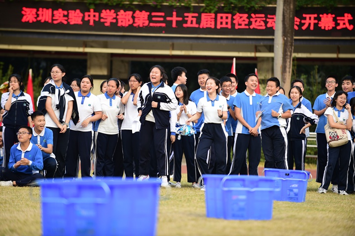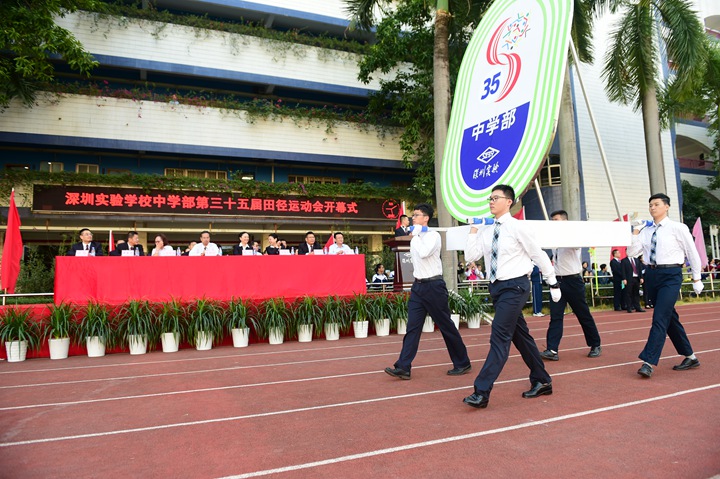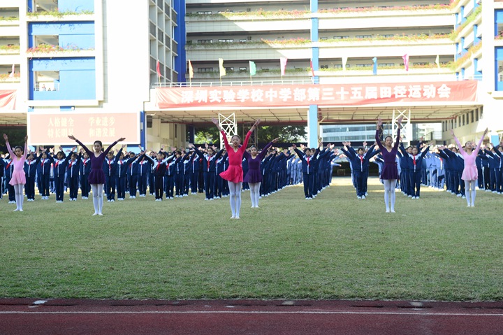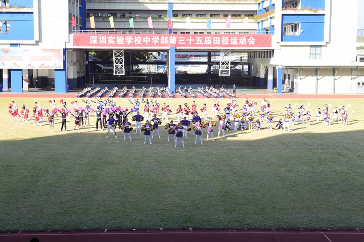 在音乐声中,深圳实验学校中学部第三十五届田径运动会的开幕式圆满结束,相信运动员们一定会赛出风格,赛出自信,赛出友谊,再创佳绩!(文/初二(7)班 张好好、吴晶承)