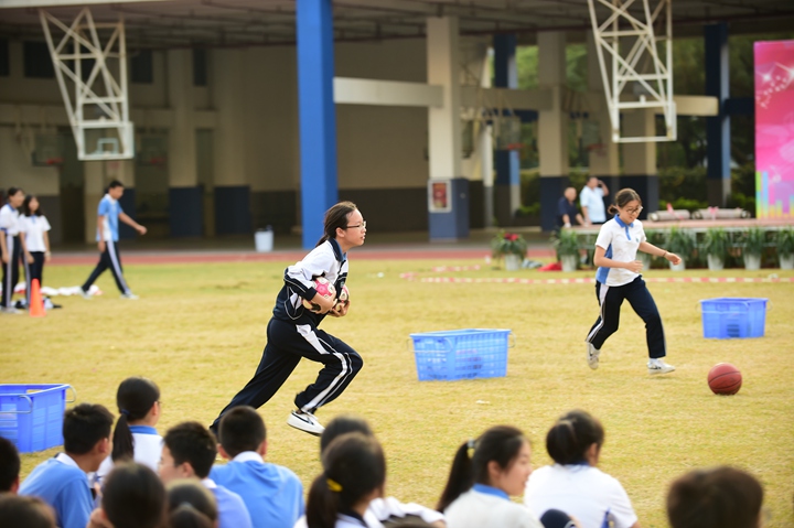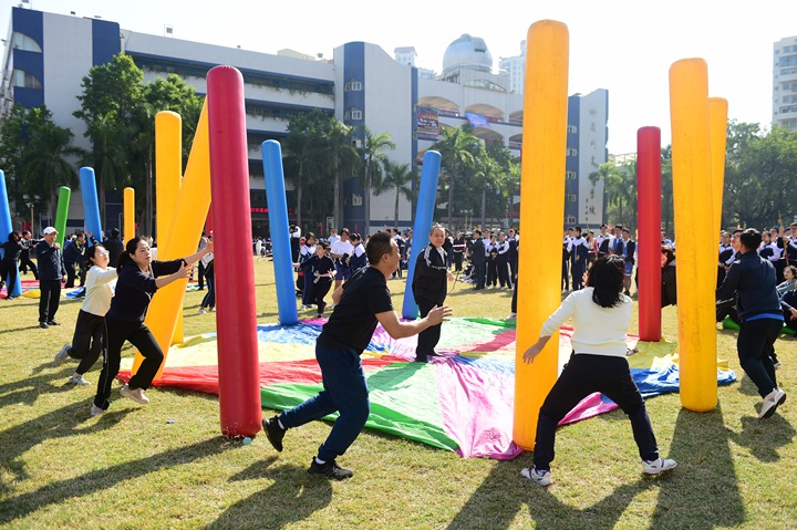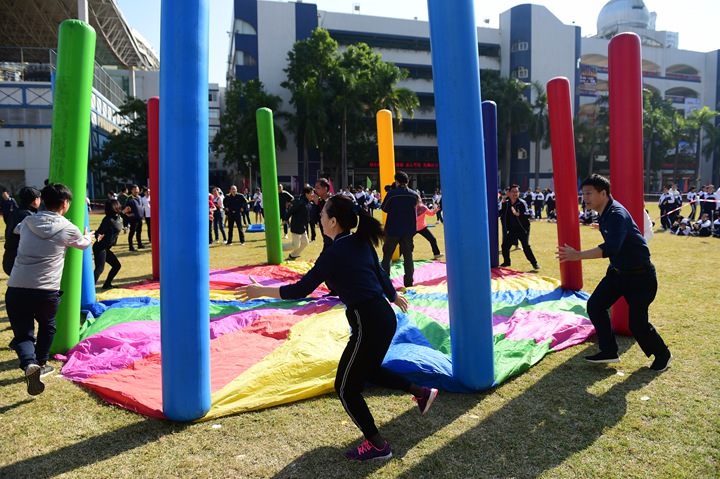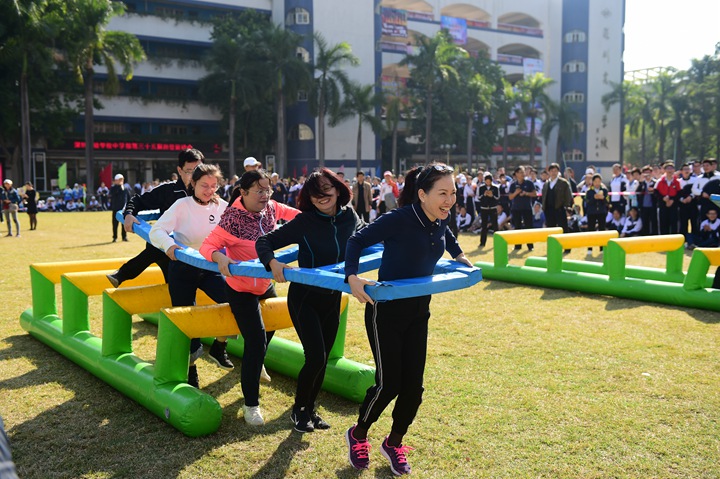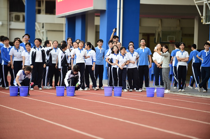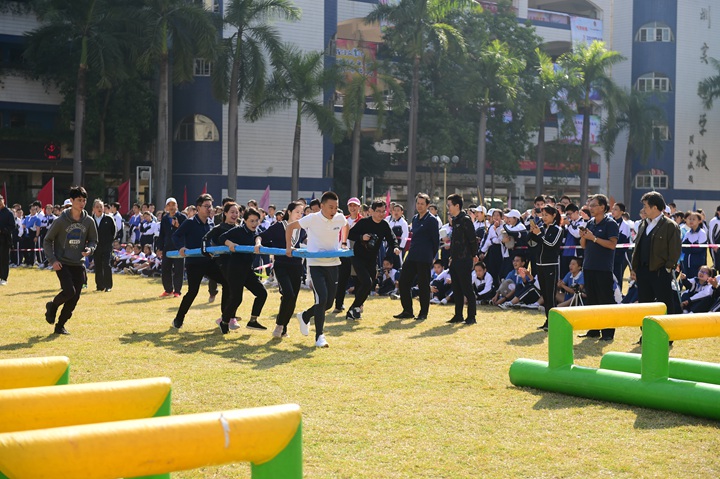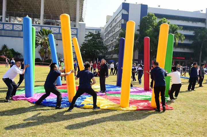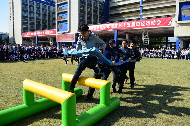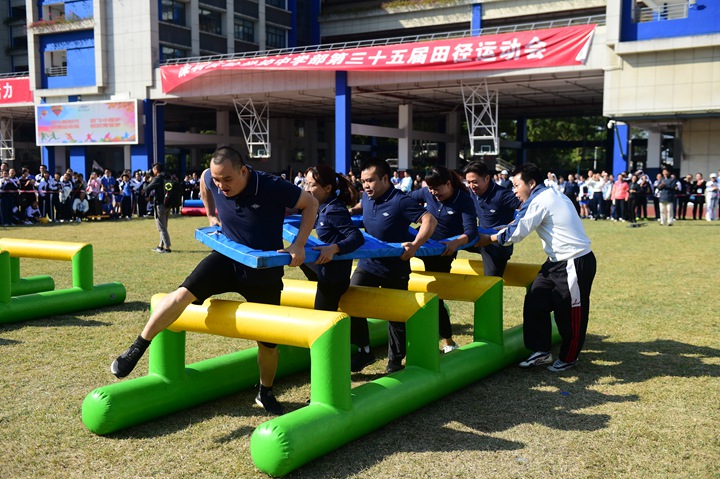 在随后的教师趣味比赛中,伴随着学生的加油鼓劲,老师们积极拼搏,力争第一,与同学们共拼搏、共奋进。