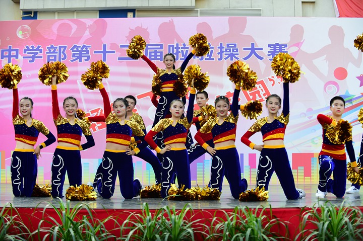 一年一度的校运动会即将来临,啦啦操大赛也成为运动场上最美的风景线。初一、初二年级参加此次比赛,经过半个月的准备,11月27日下午拉拉操大赛正式开始,同学们穿着五颜六色的服装,化着阳光灿烂的妆容,一个个焕发神采,精神抖擞。大家洋溢着自信的笑容,手拿鲜艳的拉拉球,昂首挺胸,信心十足的走上舞台。