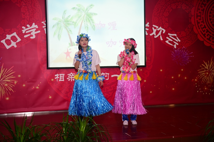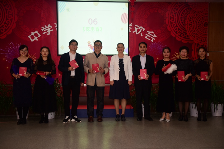 本次晚会不仅有语言类节目,还有歌曲类和舞蹈类节目。李珍和朱荣秀老师带来歌曲《咖喱欢乐中国年》,大家提前感受到假期的欢愉。唐尧老师带来独唱《贝加尔湖畔》,大家在美妙的歌声中体验到静谧清澈的世界。2020的本命年教职工的表演节目也别出心裁,“鼠鼠们”带来《夜来香》的演唱和舞蹈,音乐悠长、舞姿曼妙,尽显实验人的风采。表演结束后,龙校为“鼠鼠们”颁发“大红包”以表示祝福。