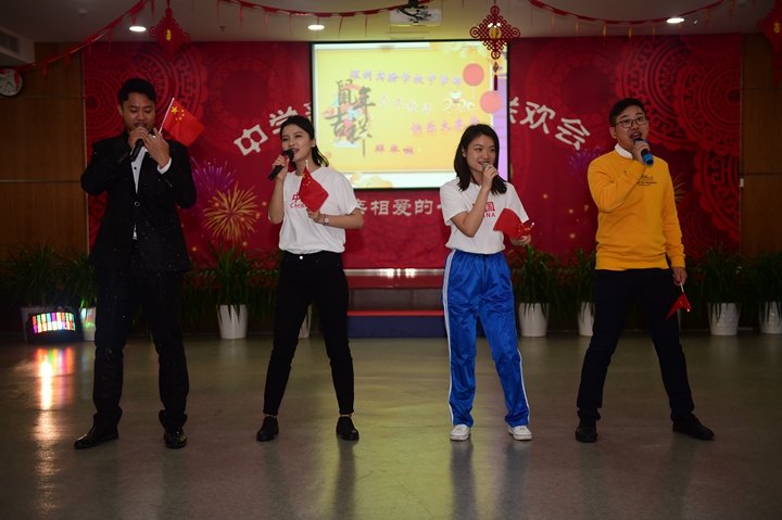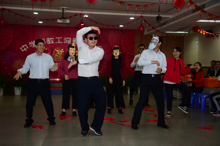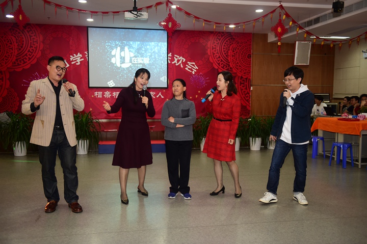 美美的晚餐过后,在龙萍副校长热情洋溢的新年祝福中拉开序幕。在本周一的晨会上,龙校长就带领全体教职工一起回顾2019年的国家大事,庆新中国70华诞、十九届四中全会开辟“中国之治”道路、澳门回归祖国20周年等。在联欢晚会上,她细数了中学部2019年的工作,教育教学工作稳步推进,“三节一周”活动课程精心设计、异彩纷呈,学科教研、课堂教学扎实高效,后勤服务工作落实到位,特别是安全工作。龙校长充分肯定并感谢为学校建设和发展辛勤耕耘的全体教工,并对大家表达最美好的新年祝福,激励大家以“深圳示范 实验先行”为责任和使命。