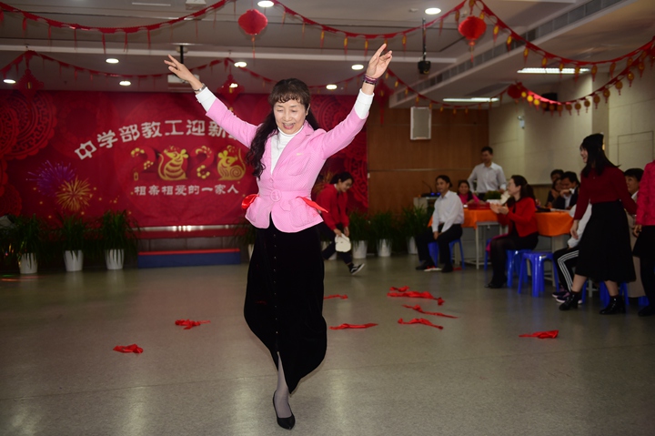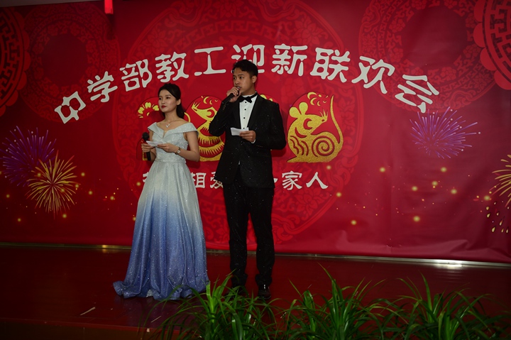 梅花迎冬开,欢歌庆新年。伴随着冬日里温暖的阳光,满怀着喜悦的心情,中学部于2019年12月31日在西楼多功能厅举行教工迎新联欢晚会,晚会由彭启嘉和朱容秀老师主持。