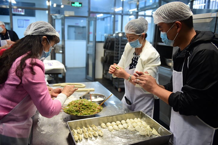 饺子,取“更岁交子”之意,象征着喜庆团圆、吉祥如意。每年迎新年的“包饺子”活动异常火爆,12月31日下午,大家齐聚食堂一楼的点心房,从准备面团、活馅儿、擀面皮到包饺子、下锅煮,这一道道的工序凝结着集体的力量。饺子的每一道褶儿,凝结着大家对实验深沉的爱和祝福。