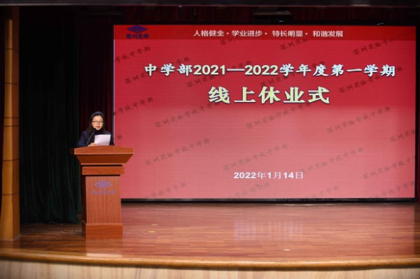 1月14日晚19点30分,中学部全体师生、家长准时收看中学部2021—2022学年度第一学期休业式,休业式采用线上方式进行。学生处高丽副主任主持。