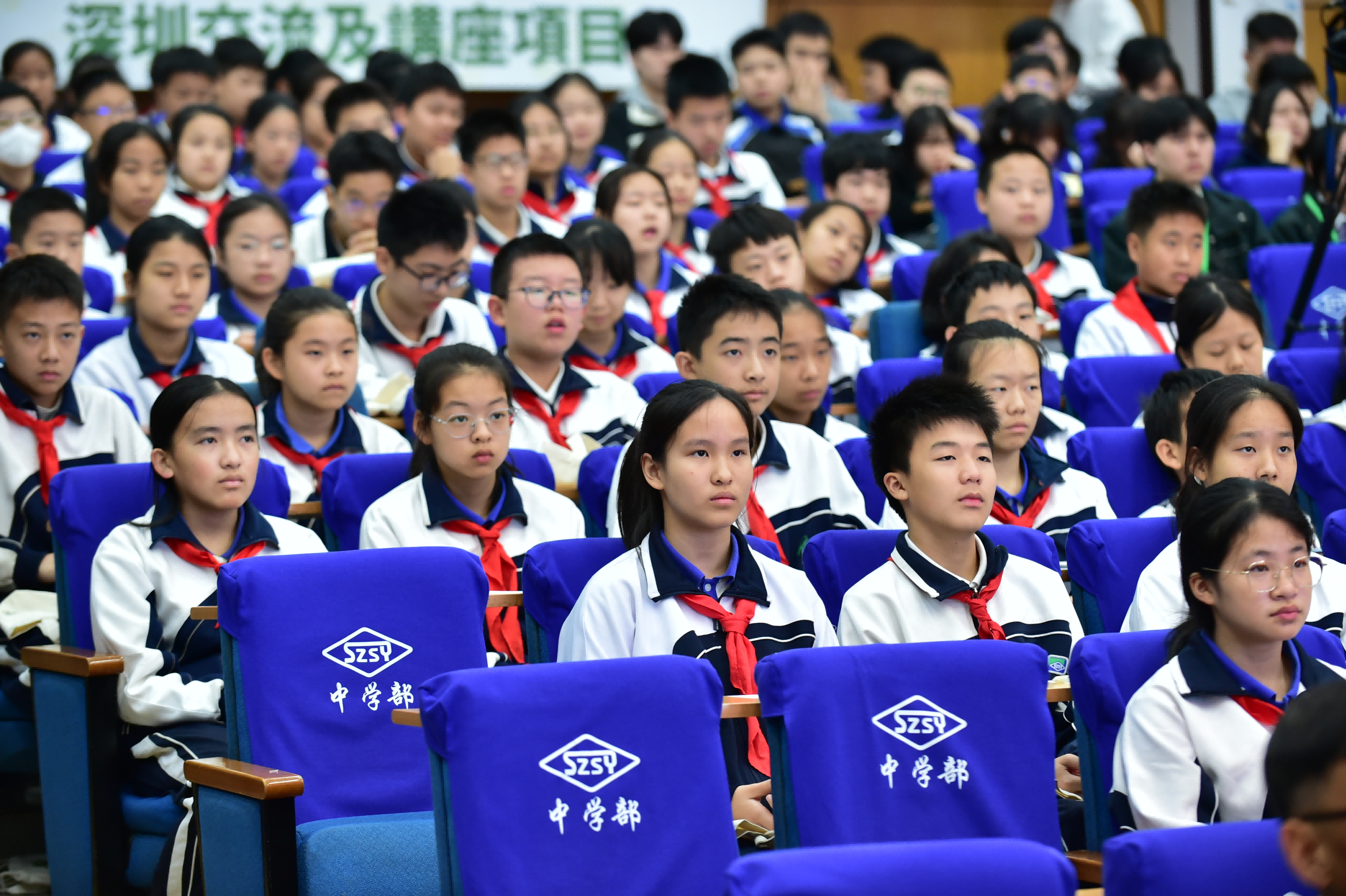 活动在七(2)班李静茹同学的主持下拉开帷幕。香港环境保护署助理署长雷学良、深圳市科协王栋部长、朗晴慈善麦乐嫦主席、深圳市专家人才联合会郭清蓝秘书长、深圳实验学校邓娟副校长等出席了本次活动。