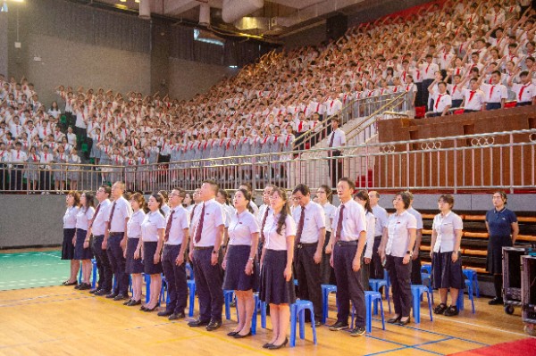 最后,八、九年级学生代表为全体师生演唱歌曲《第一天》,将现场气氛推向高潮。开学典礼在高昂的校歌声中落下帷幕。