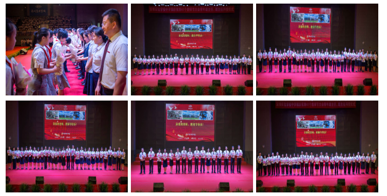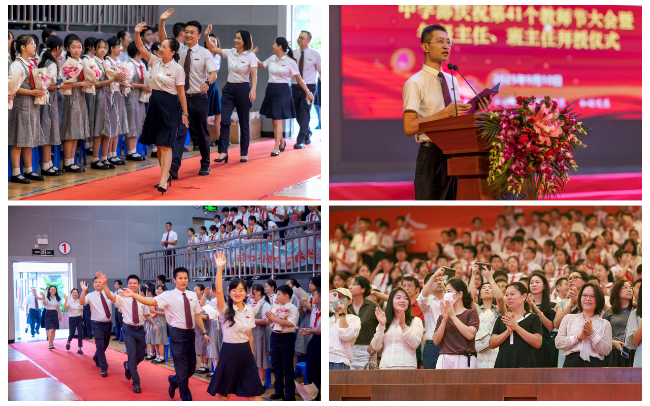 秋兰溢彩,师韵流芳。在第 41 个教师节来临之际,中学部于 9 月 10 日上午 8 时在文体馆隆重举行了庆祝第 41 个教师节大会暨年级主任、班主任拜授仪式。此次活动由学生处副主任李博峰主持,全校师生共同参与,这不仅是一场职责的赋予,更是一次师道尊严的礼赞与教育薪火的传承。
