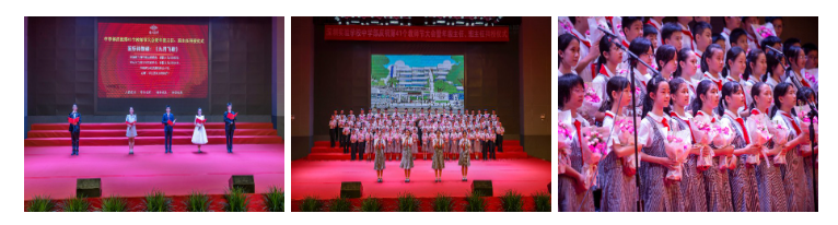 八、九年级学生代表声情并茂地朗诵了配乐诗《九月飞歌》,他们配合默契,情感真挚,充分表达了对老师的感恩与敬意。七年级 6 班和 7 班的同学们共同演唱了《想要为你唱首歌》,他们合唱声音和谐动人,情感真挚,感染了全场。