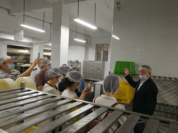 程永甲主任带领大家参观中学部食堂并介绍了中学部食堂的基本情况,同时还耐心解答与会人员提出的问题。
