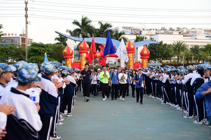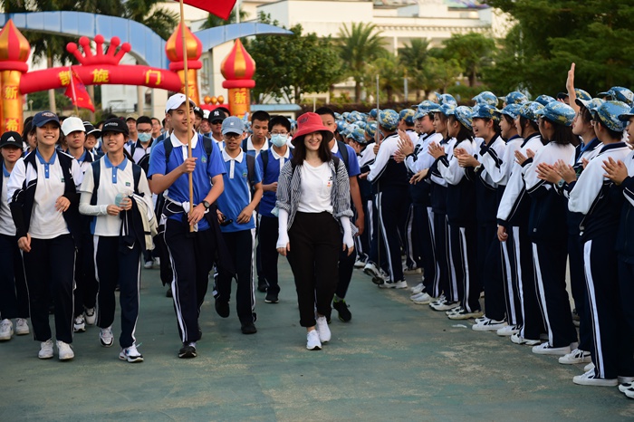 迎着夕阳的余晖,迈着坚定的步伐,在先期到达鹏城青少年基地的中学部初一初二年级同学们的热烈掌声中,初三全体师生意气风发,齐步穿越那道象征胜利的“凯旋门”,圆满完成了30千米的徒步拉练。