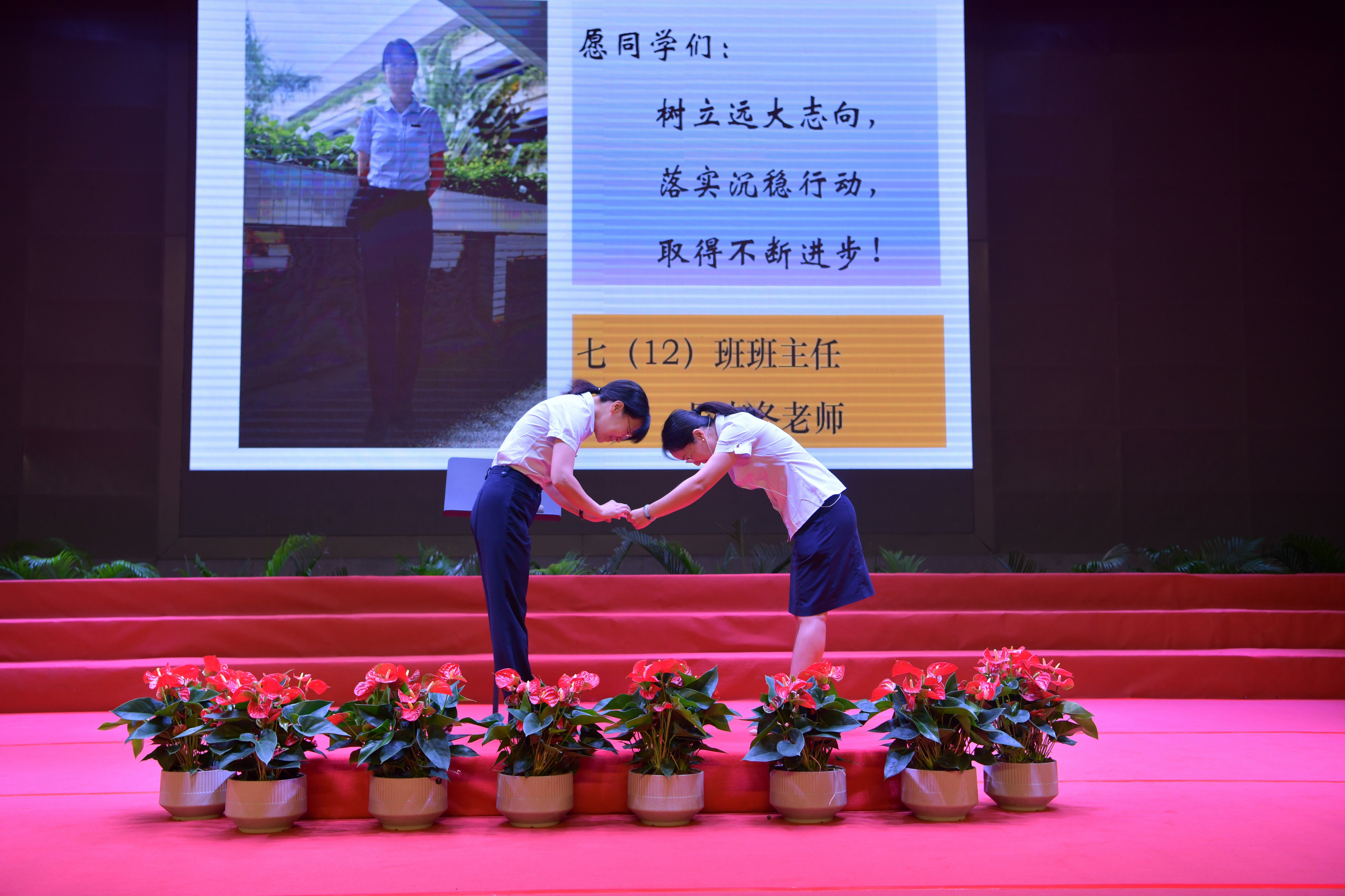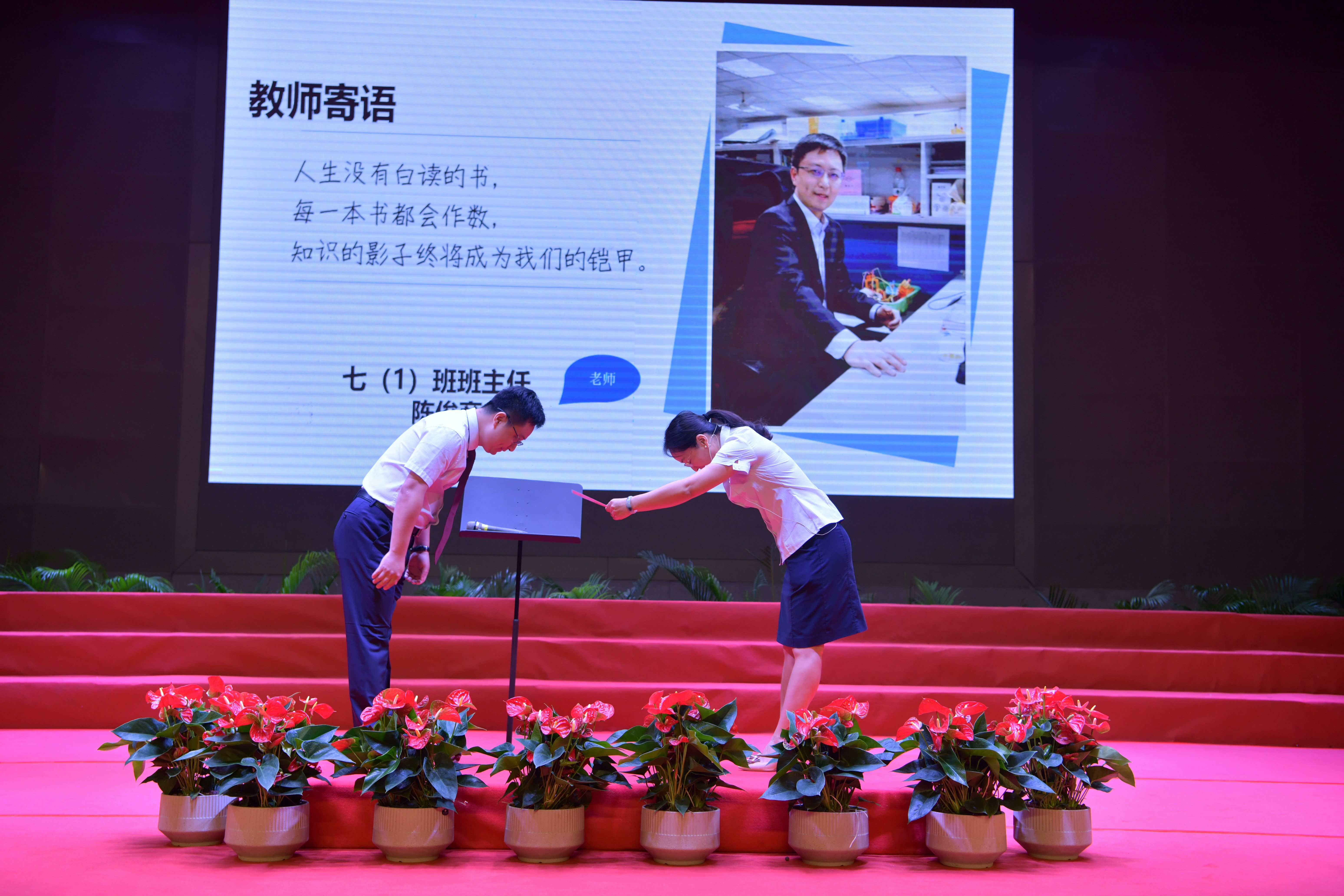 随后,年级主任、班主任拜授仪式隆重举行。邓娟校长为4位年级主任、30位班主任一一颁发聘任书。校长一声声“拜托了”,老师们一句句“请校长放心”,让现场的学生和家长们都感受到了学校对老师们的殷切重托与深切信任,体会到了老师们对职业使命的郑重承诺和坚毅担当。