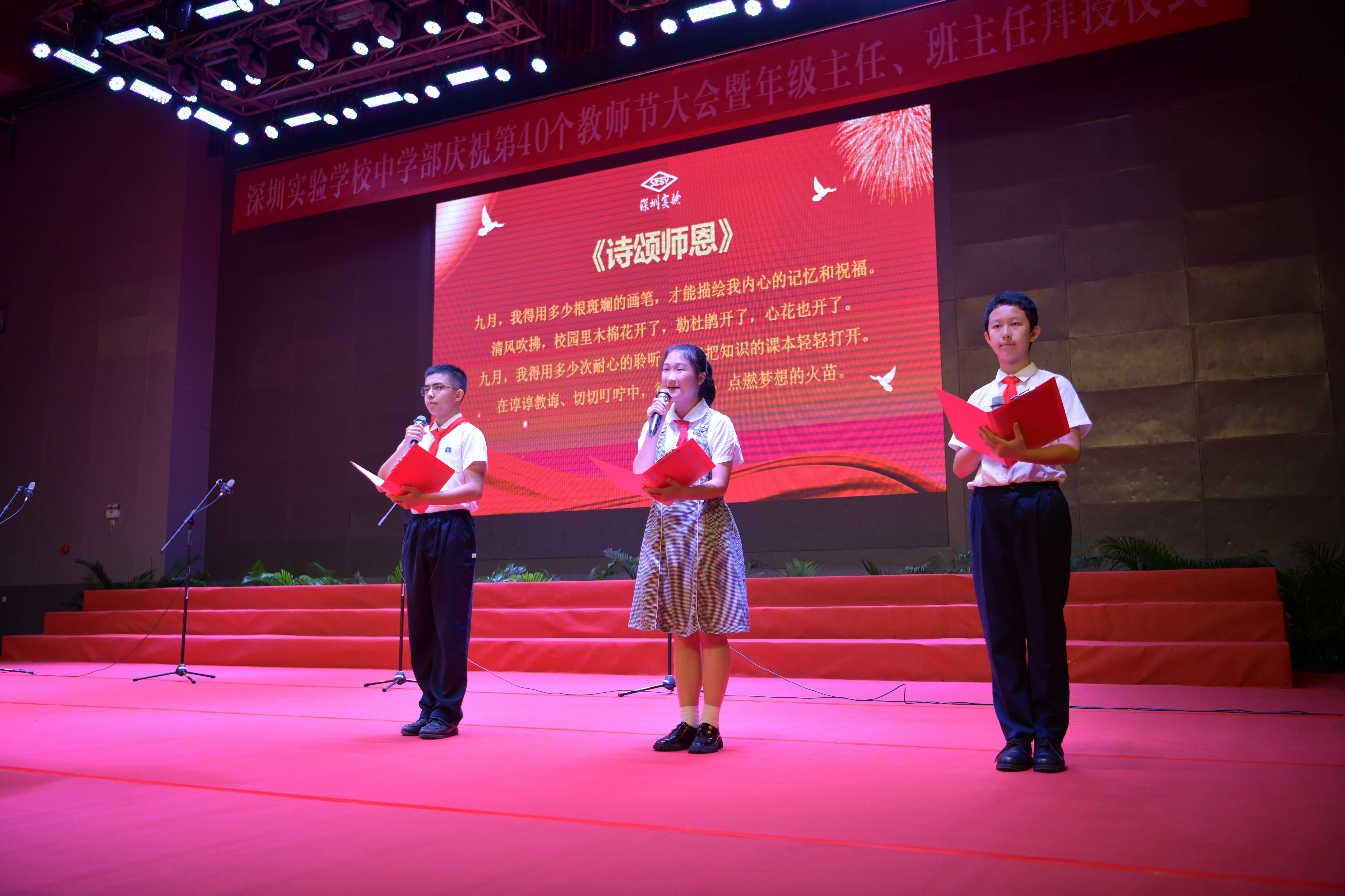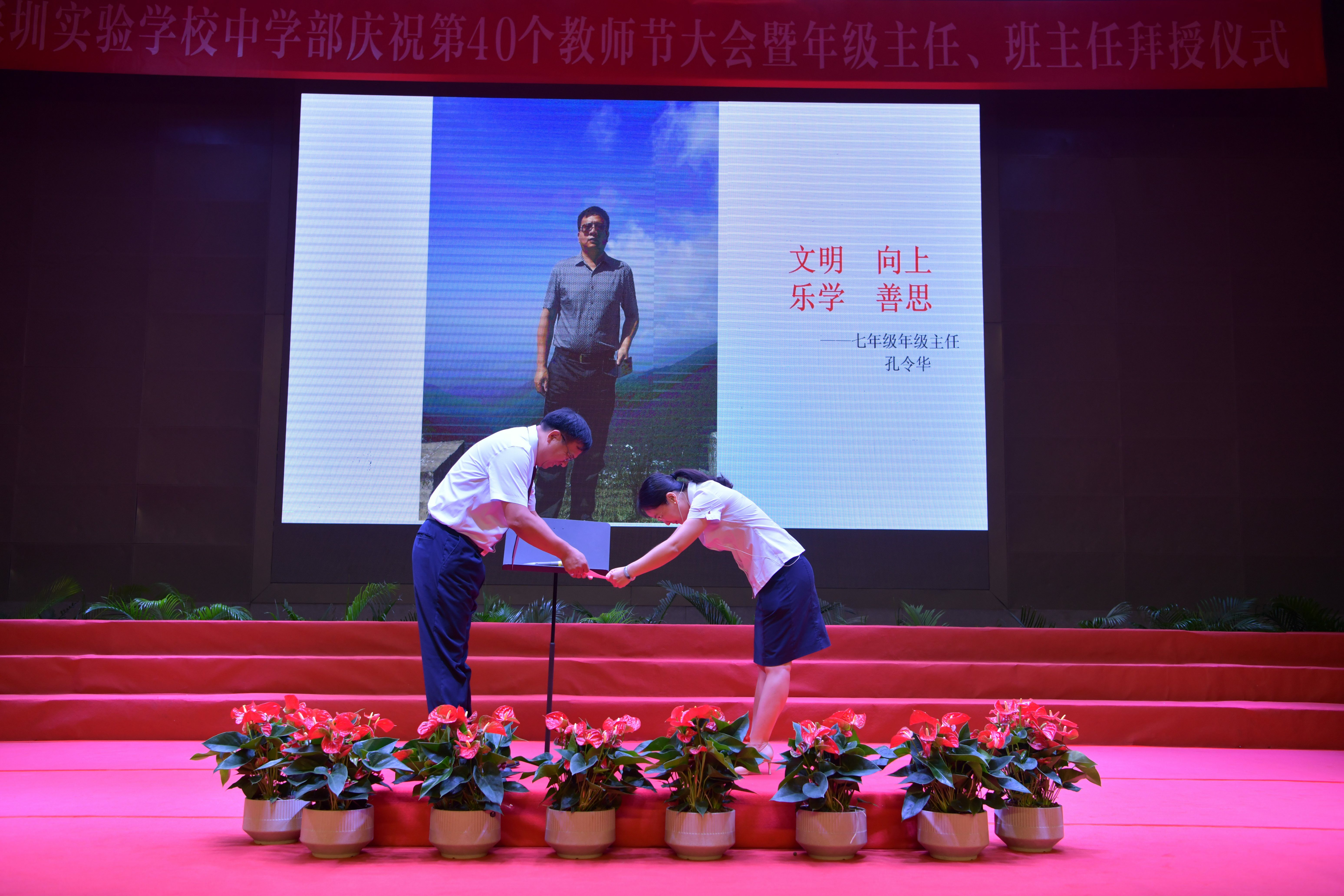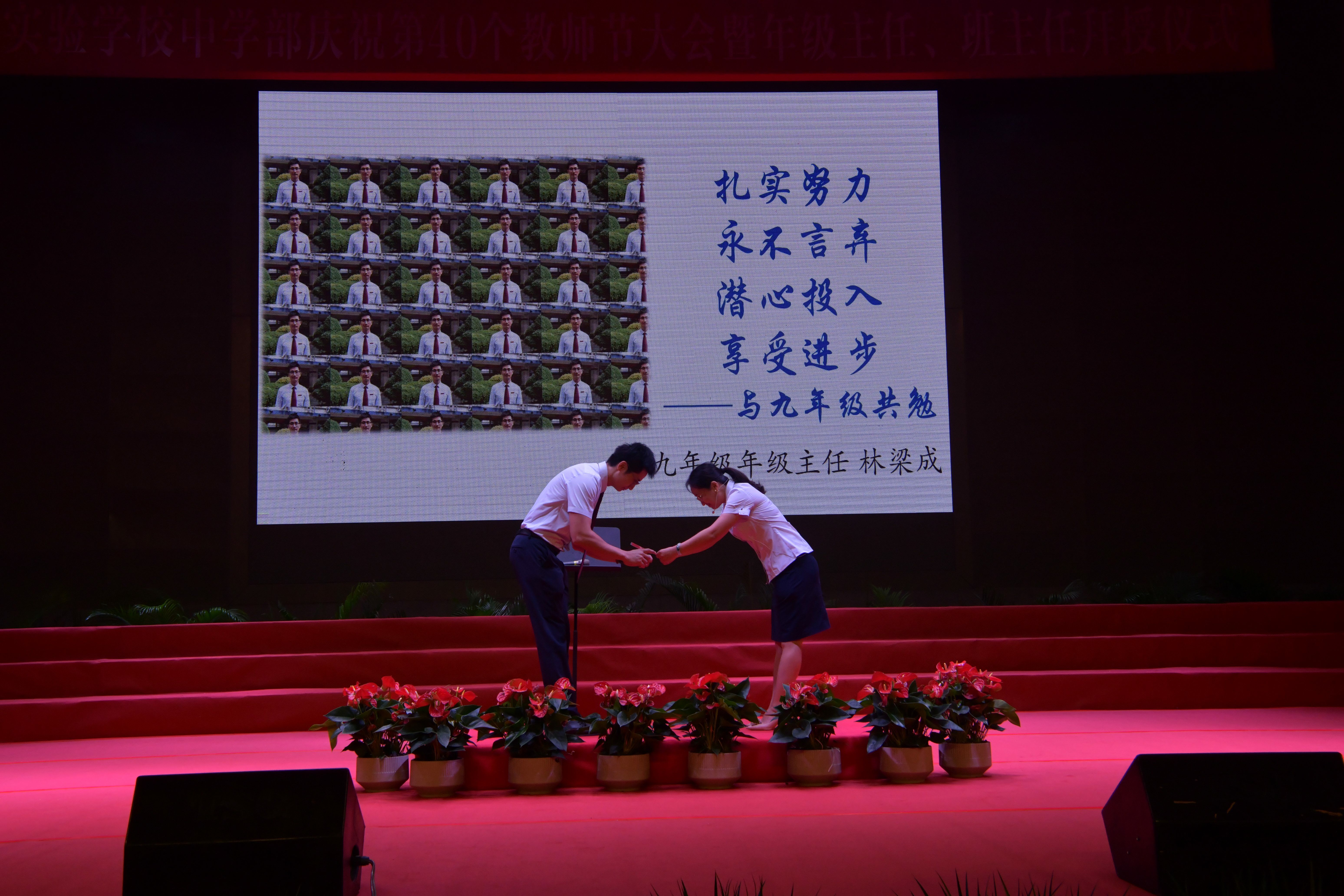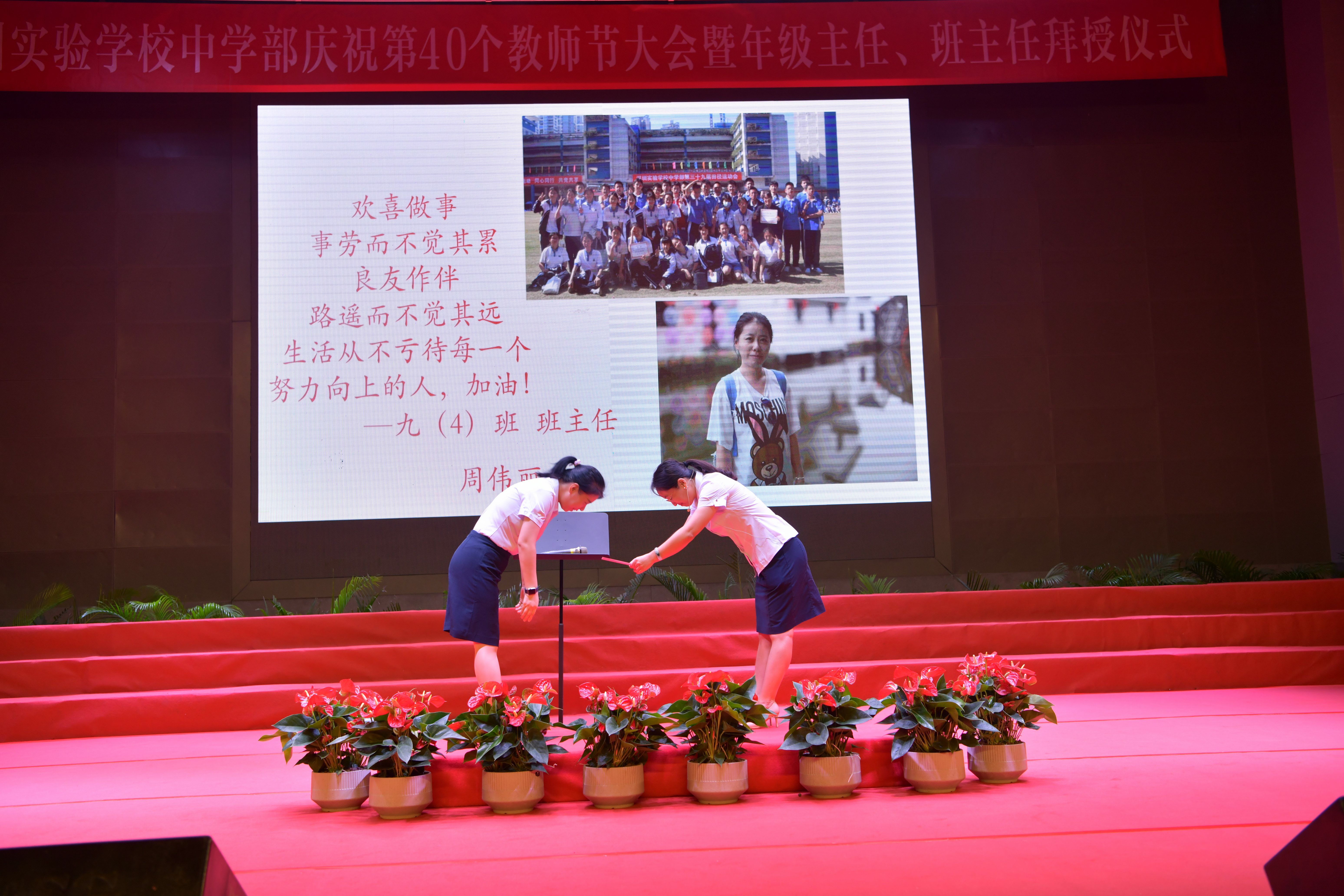 9月金秋,硕果累累,正值第40个教师节来临之际,中学部于9月10日上午8:00在文体馆隆重举行了庆祝第40个教师节大会暨年级主任、班主任拜授仪式。此次活动由学生处熊珊主任主持,全校师生共同参与,庆祝这一充满温情与敬意的节日。